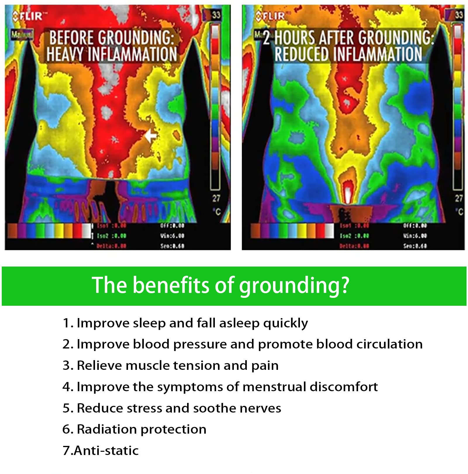 - Benefits of connecting to earth Absorbing free electrons from the earth by grounding blanket to balance the body charge and improve sleep quality,Reduces inflammation in the body and relieves pain.The whole family can be used by men, women and children, pregnant women and children can be used, grounding to make the body healthier.