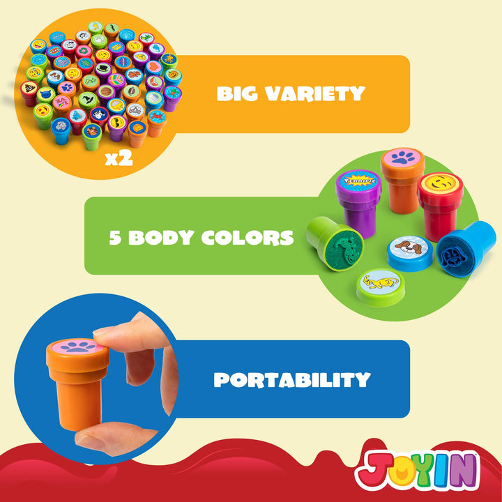 - Original Printing & Stamping – 100PCS Assorted Stamps for Kids Self-Ink Stamps for Party Favor, Teacher Stamps, Kids Treasure Box, Prize for Classroom, Easter Egg Stuffers (50 Designs, Dinosaur, Halloween Stampers) by JOYIN