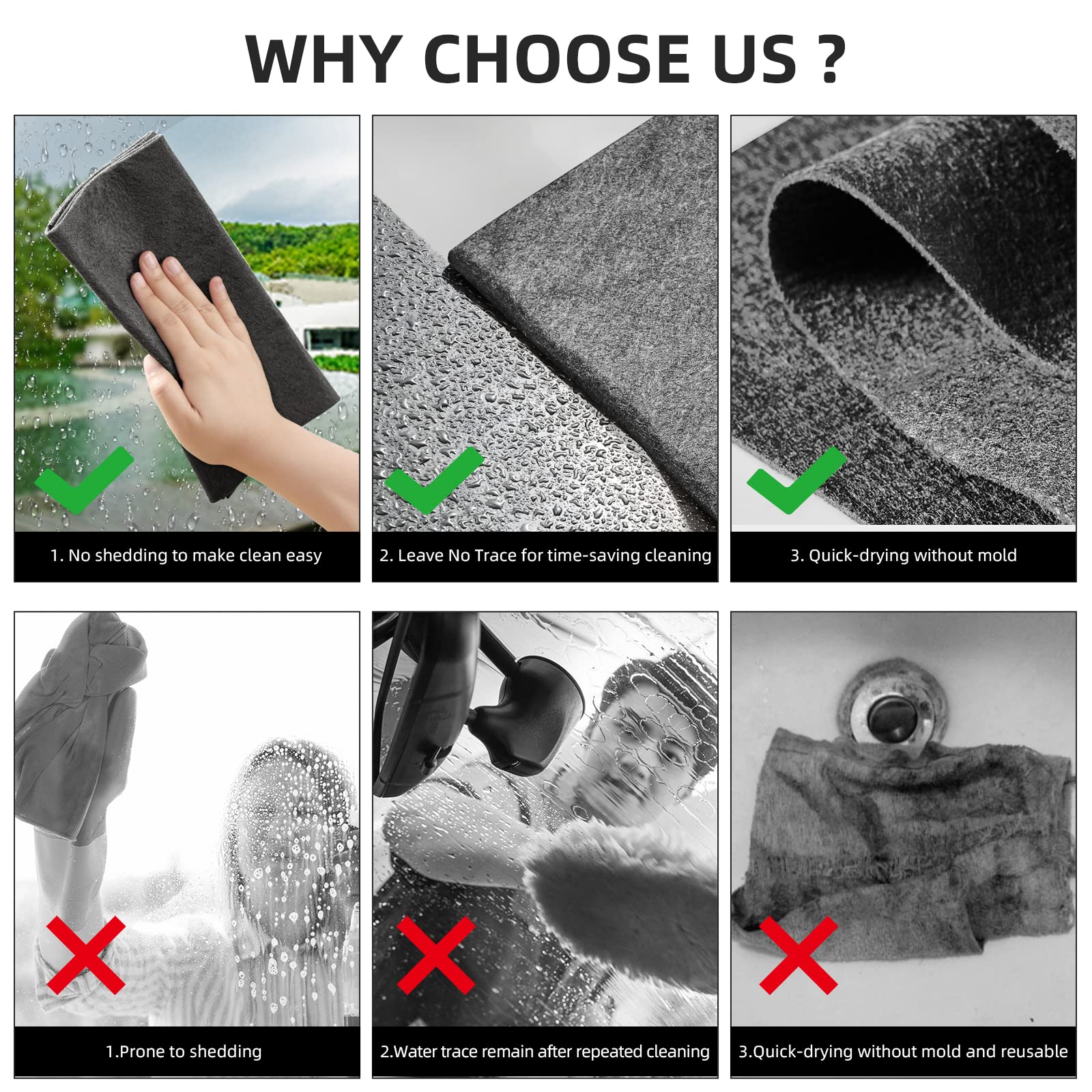- Strong Water Absorption Soft material can absorb several times their own weight of water,use this cleaning cloth to wipe the glass without leaving unsightly water marks, and easily get a clean mirror without marks . Each piece of magic cloth is exquisite workmanship, thicker and more durable,increase the service life.