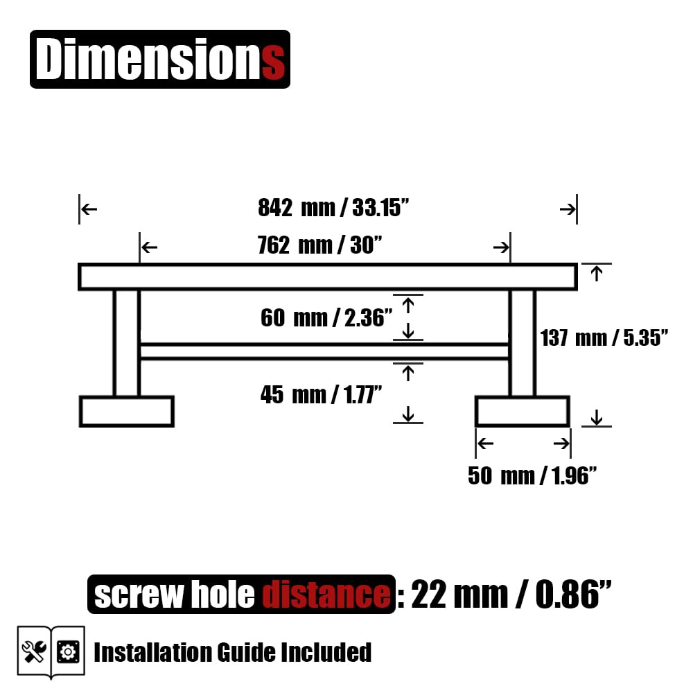 - Measure Before Buying Need 33 Inch Space 30 Inch USEABLE Bar, Total Length 32.91 inch. No need to fold your towel any more.