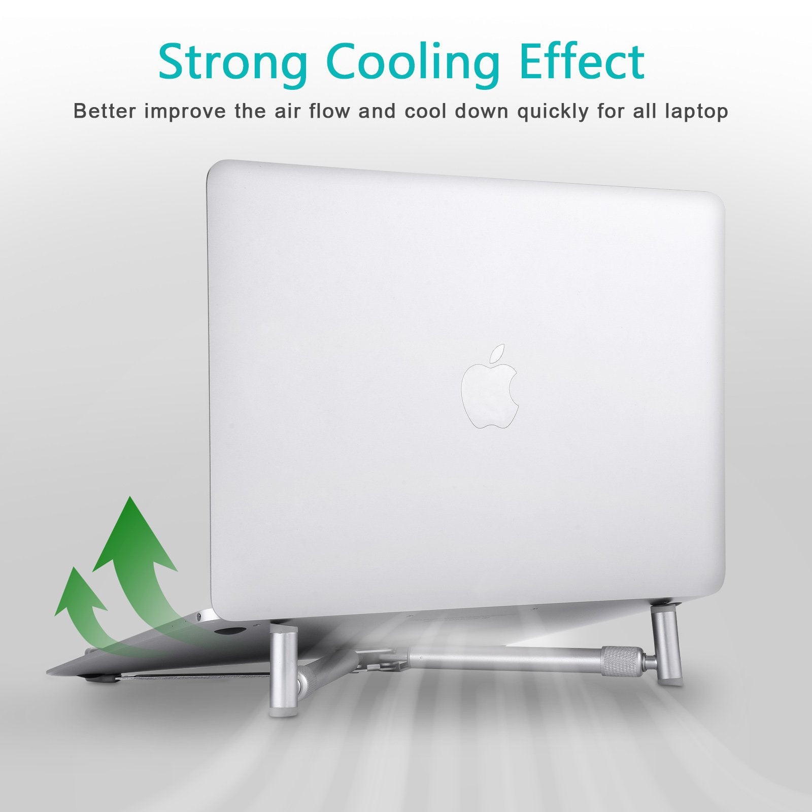 - The portable laptop stand guarantees better airflow to cool down your computer and makes the most benefit for your laptop's fans point downwards
