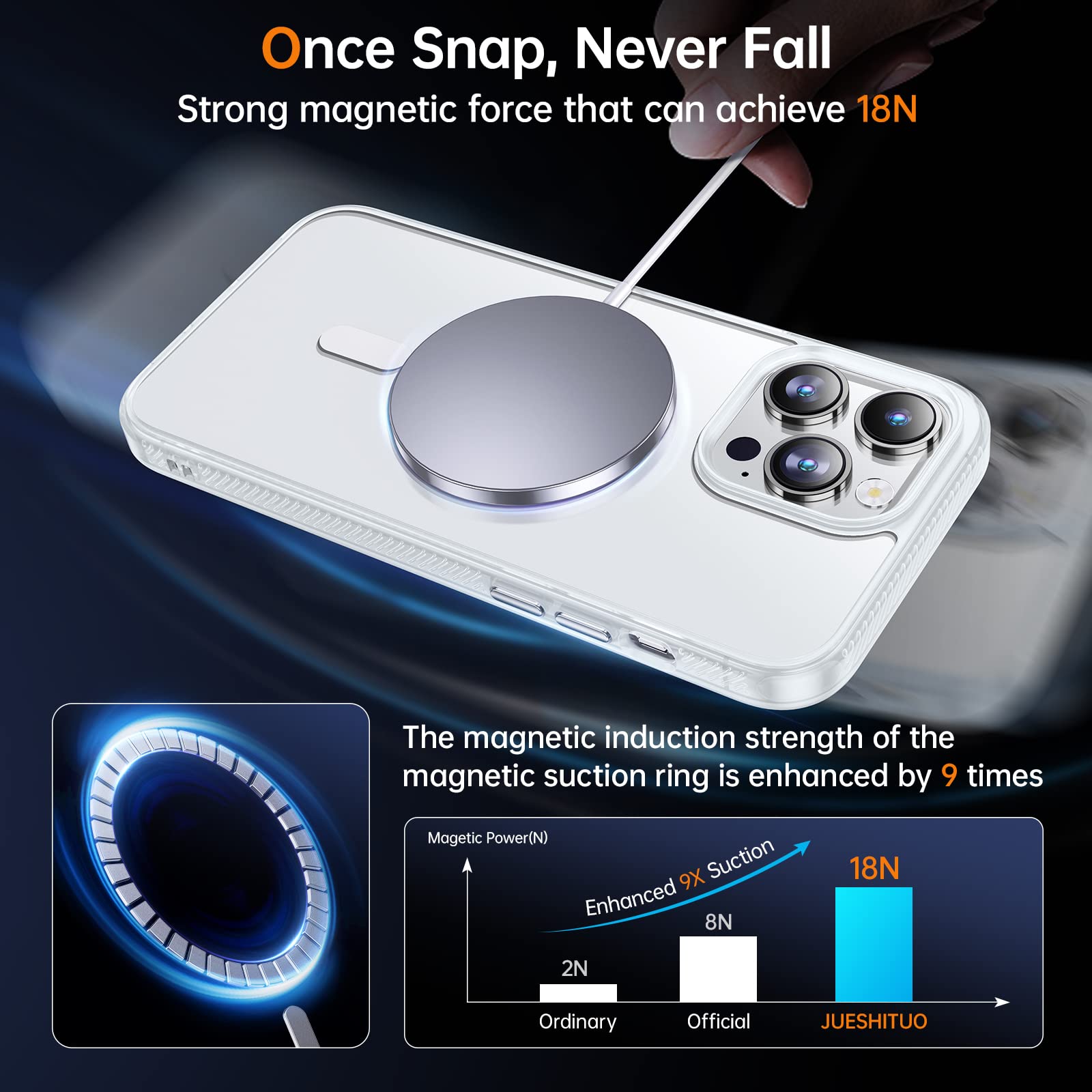 - [ ] This iPhone 14 Pro Max case, with an aviation-grade magnetic ring that aligns perfectly with MagSafe chargers, offers a strong attach experience and faster 20W wireless charging. Besides, the built-in 38 N52 magnets provide a strong magnetic force to ensure this case can be firmly attached to all MagSafe accessories like the MagSafe charger, wallet, battery pack, and car mount.