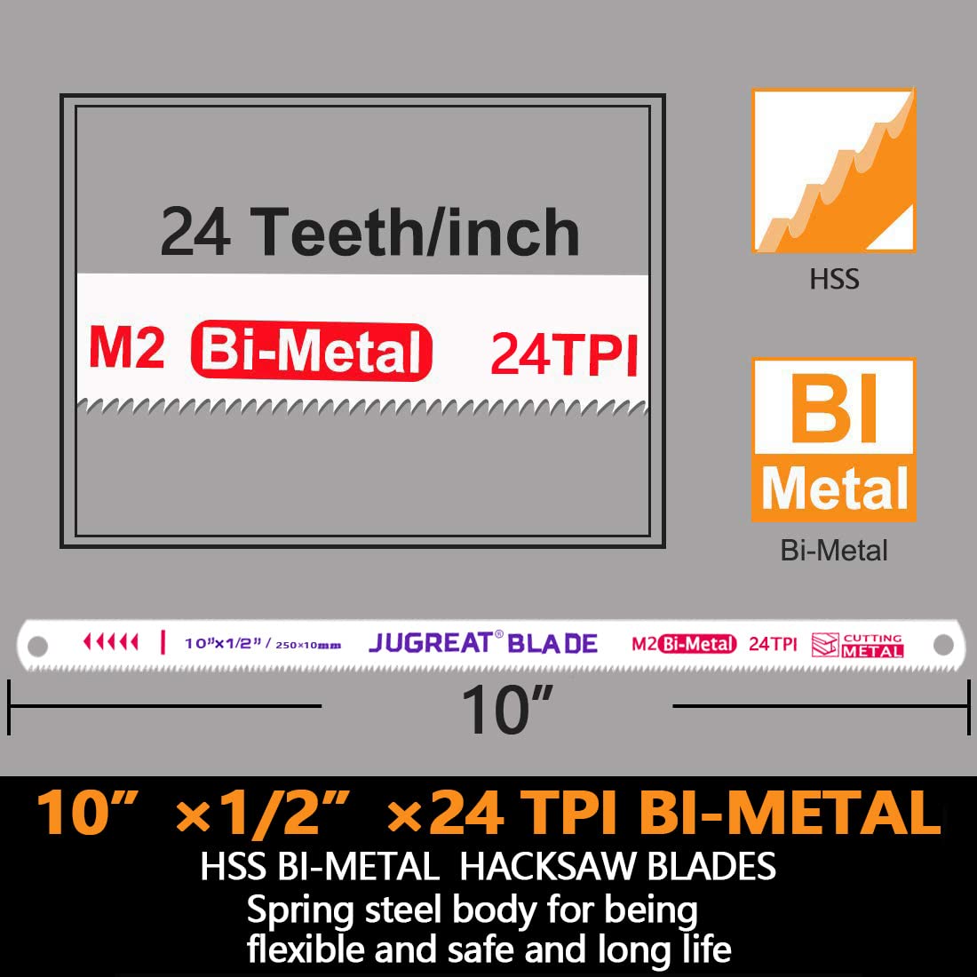 - Original Hacksaw Blades – 10 Hacksaw Blades Replacement Bi-Metal,Bi-Metal Safe Flex Metal,High Speed Steel -24TPI (10 Pack) by JUGREAT