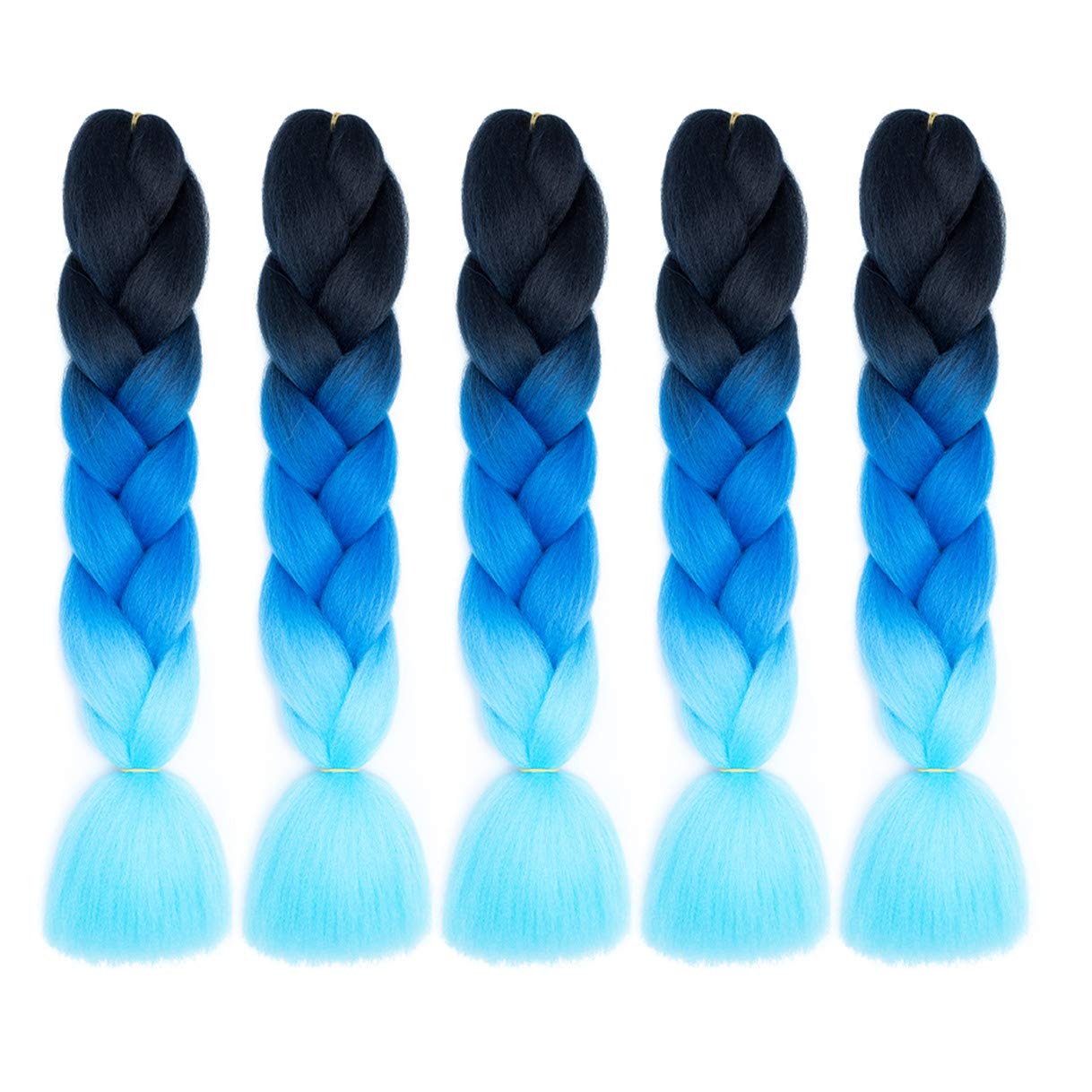- Original Hair Extensions – Jumbo Braiding Hair 5PCS/Lot Ombre Kanekalon Pre Stretched Braiding Hair Extensions High Temperature Synthetic Burgundy Blonde Kids Hair 24 Inch Hair for Braiding (black-blue-azure) by Laurinda Hair