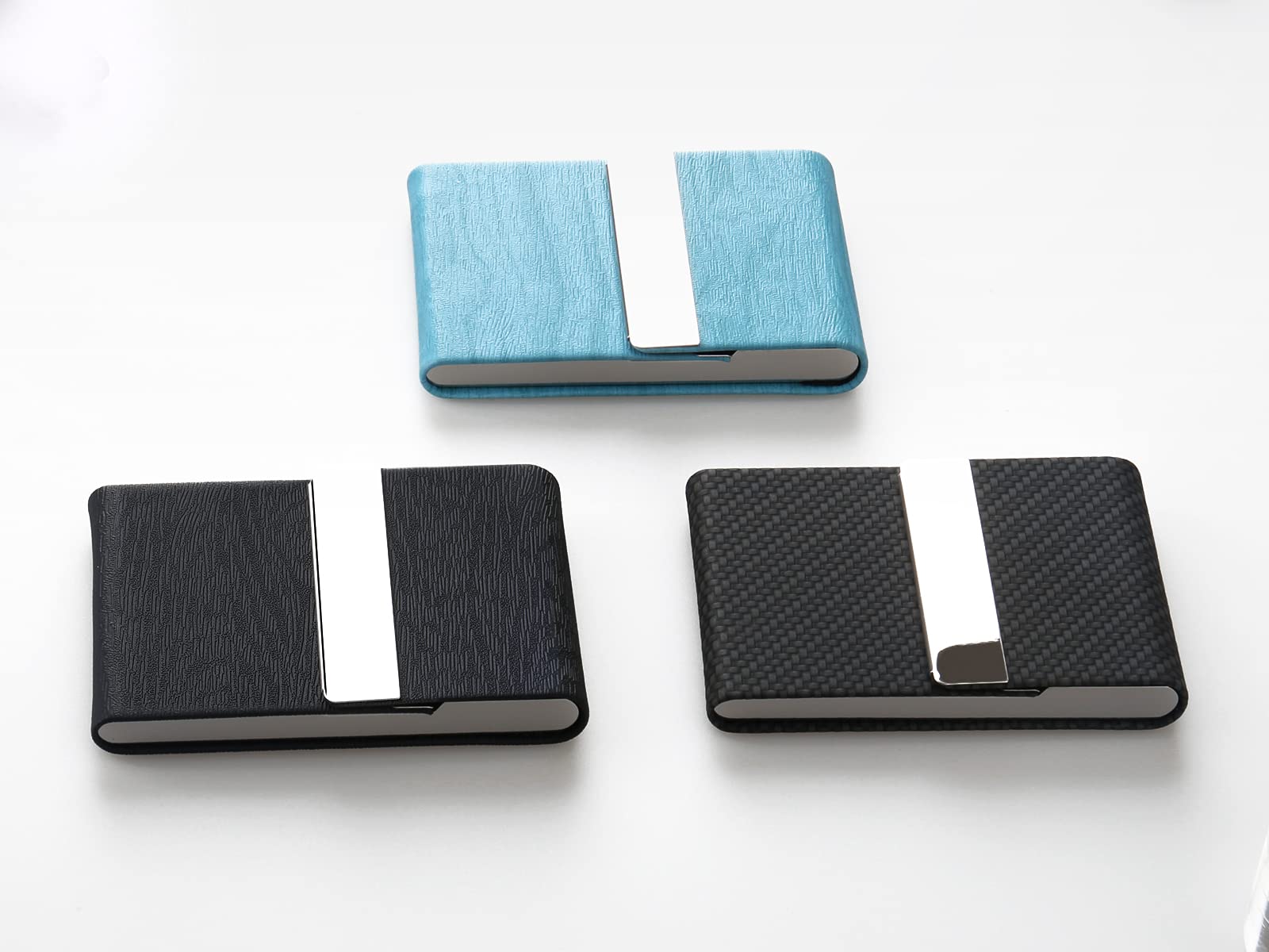 - MATERIAL: Business Card Holder is made of high quality PU leather and stainless steel. High quality PU leather body with glossy stainless steel covered edge, Stainless steel high gloss polishing treatment, rich luster, holding long durable. It has a good solid construction, use longer.