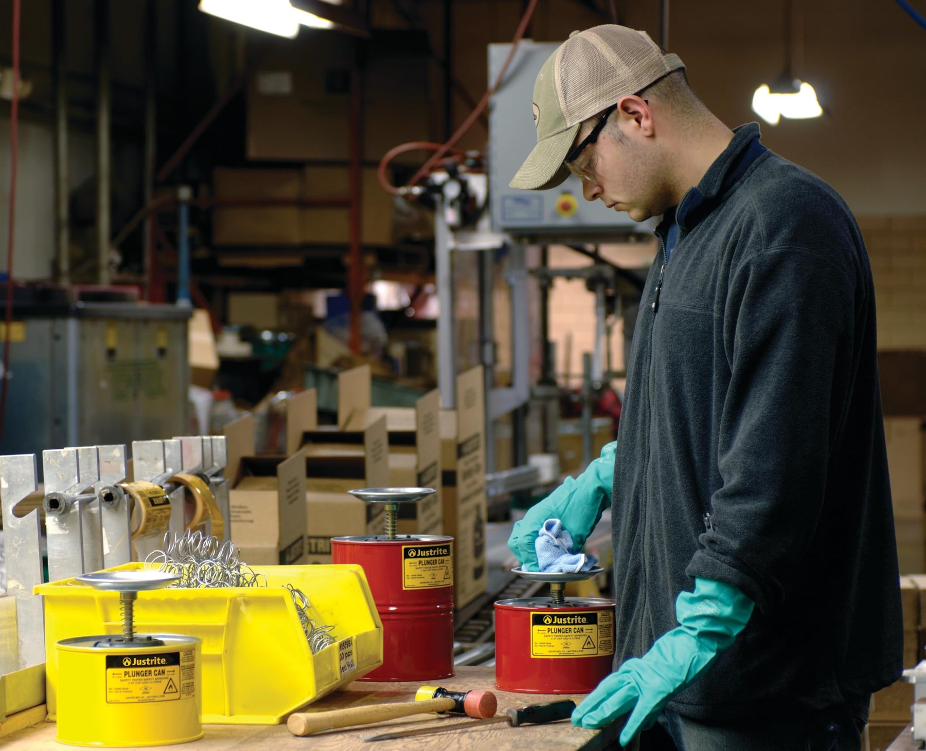 - Original Cans – Plunger Can for Solvents, 2 Quarts Capacity, 7.4 x 7.25 Steel Push-Down Solvent Dispenser Can, Made in The USA Industrial Mechanic Tools, Red, 10208 by Justrite