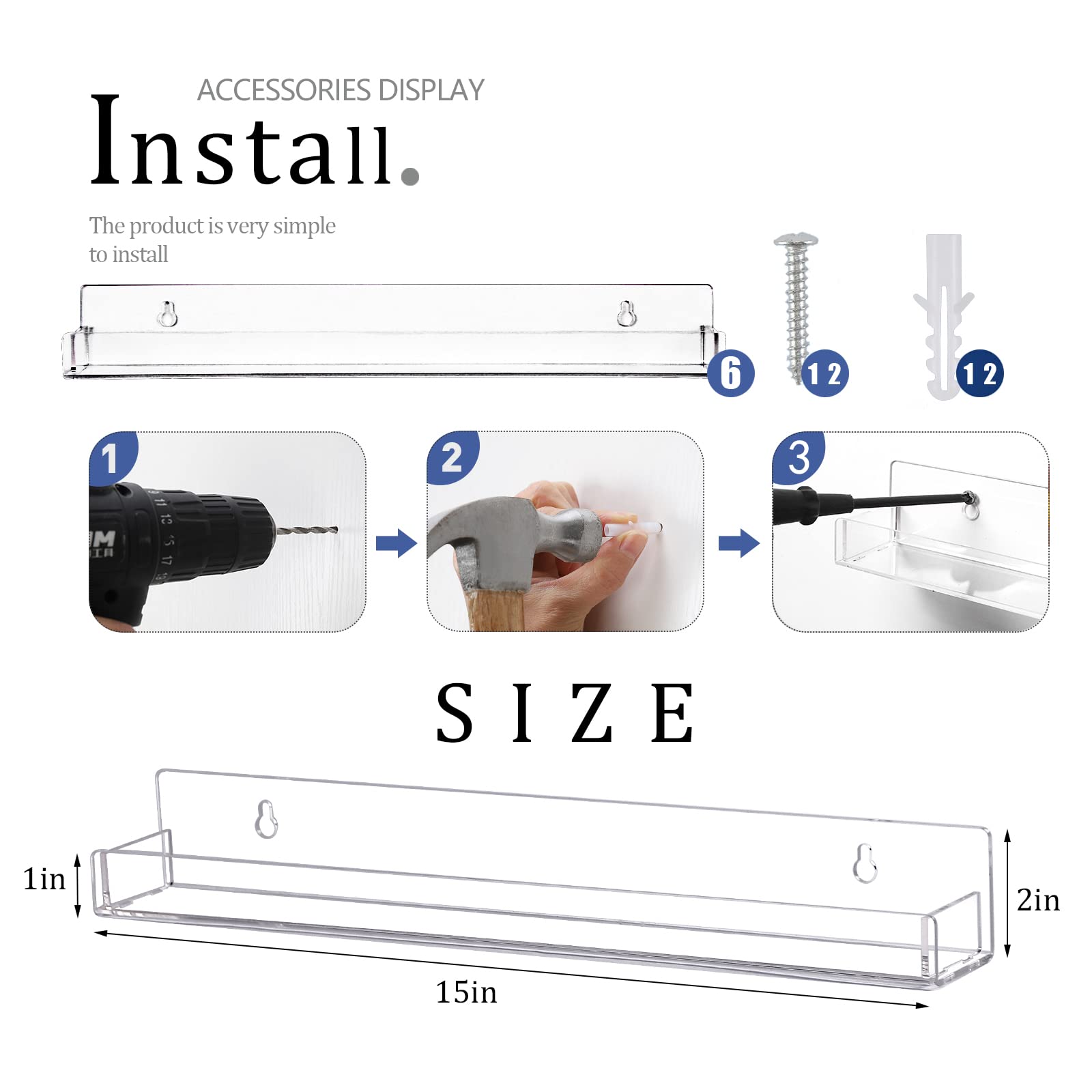 - Easy instal- It comes with 6 pieces of acrylic shelf, each stand is individual, can be mounted separately or as a combo of 2 or 3 racks with the included screws and anchors.