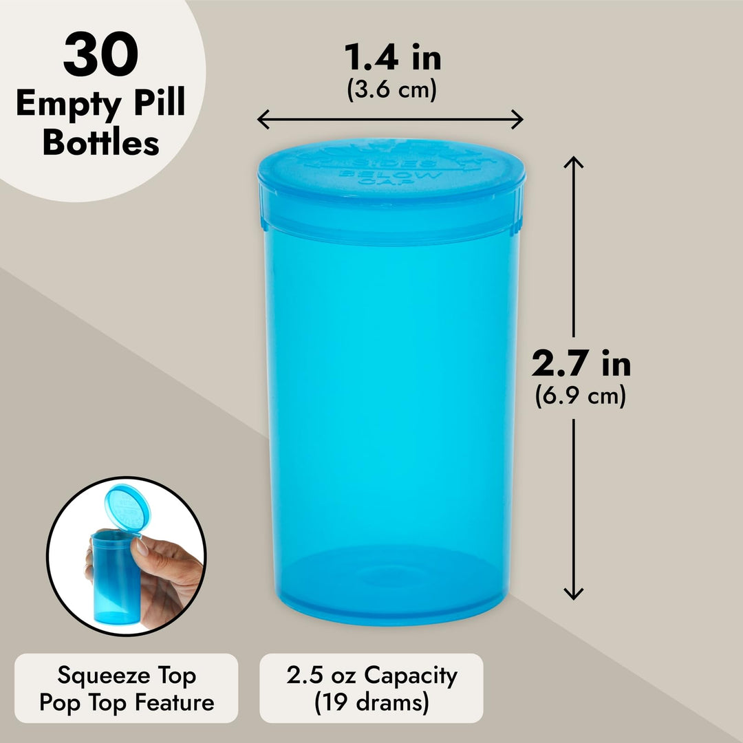 - Original Pill Organizers – 30 Pack Empty Pill Bottles with Pop Top Caps, 19 Dram Prescription Medicine Containers (Blue) by Juvale