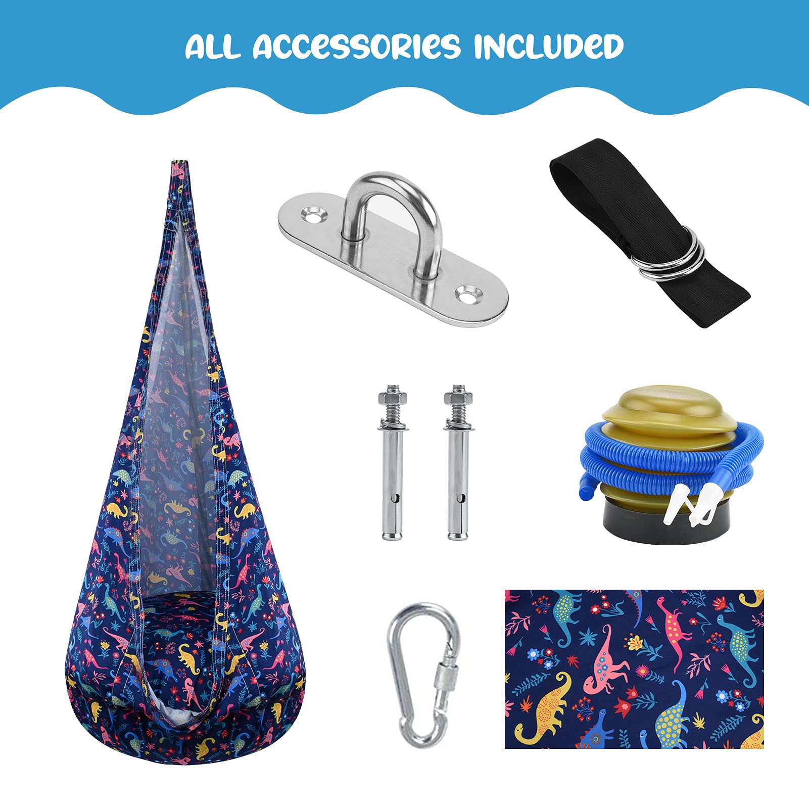 - Easy to Install and Universal Use:This Indoor Pod Swing includes all accessories so that you can hang it easily.When you take it down, deflate the cushion and fold the swing.