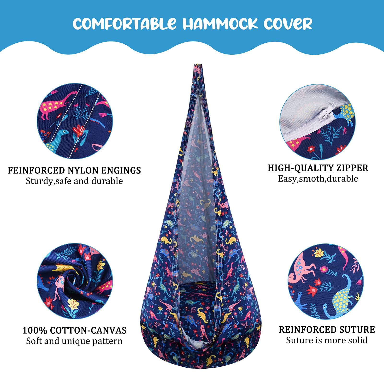 - Unique Design Patterns: The pattern comes from our in-house designer, adopt dinosaur element that are popular with children.which will make your kids hammock unique.