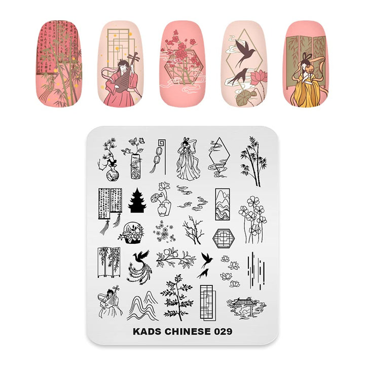 - Original Templates – Nail Stamping Plates Stamper Set Chinese Style 2 Stamp Templates + 1 Silicone Stamper (Beauty & Cat) by KADS