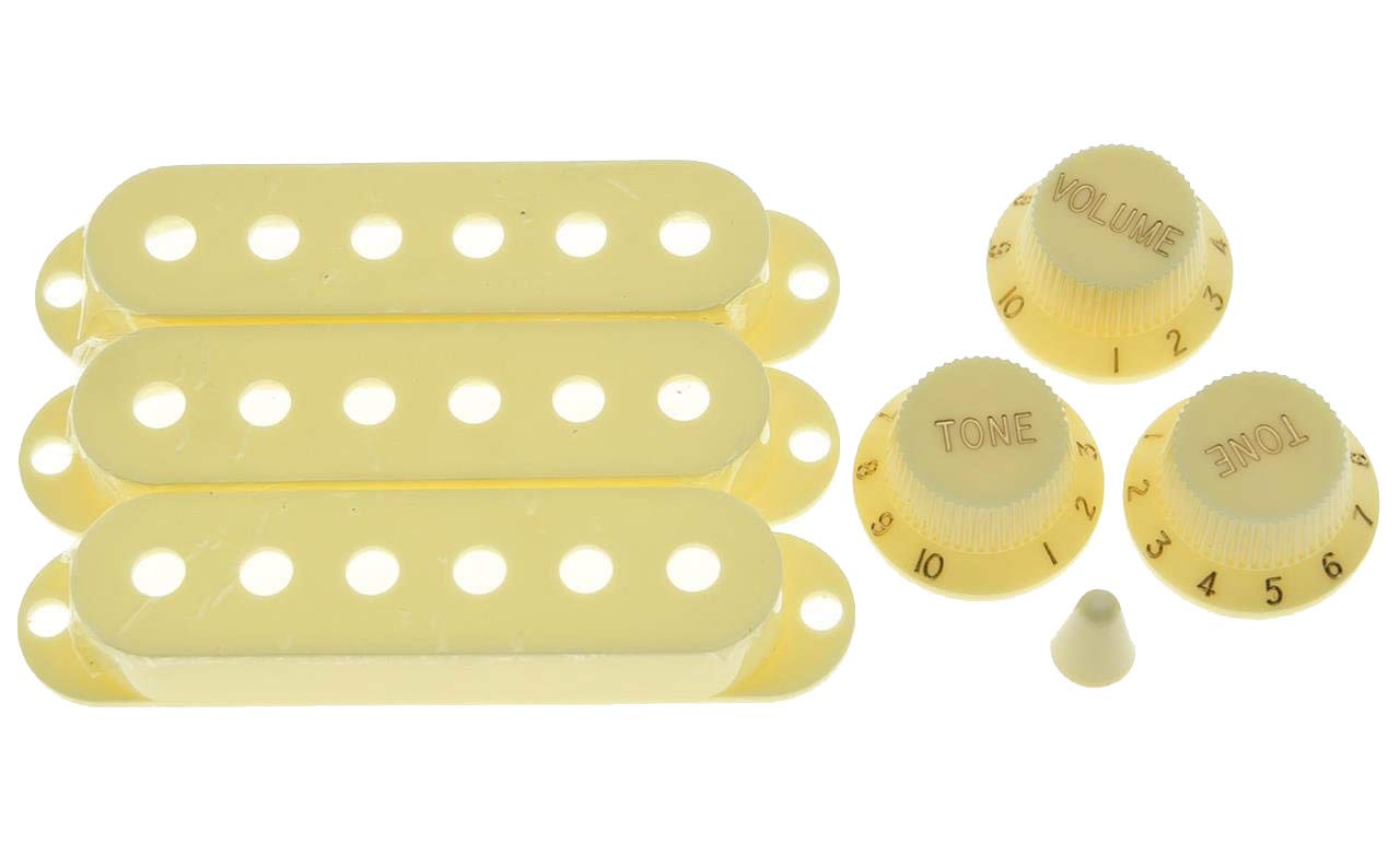 - Original Pickups & Pickup Covers – Aged White ST Strat Pickup Covers Knobs and 5 Way Switch Tip by KAISH