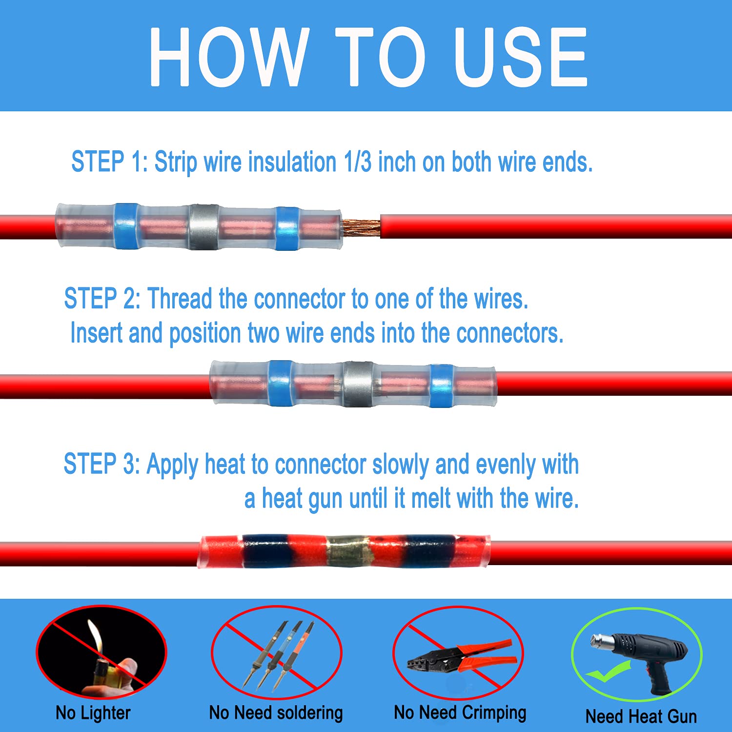 - EASY OPERATION WIRE CONNECTOR With only a heat gun with reflector nozzle and this heat shrink connectors, two wires can be tightly connected and secured. No need extra solder, no need crimping pliers. These solder seal wire connectors are so amazing.