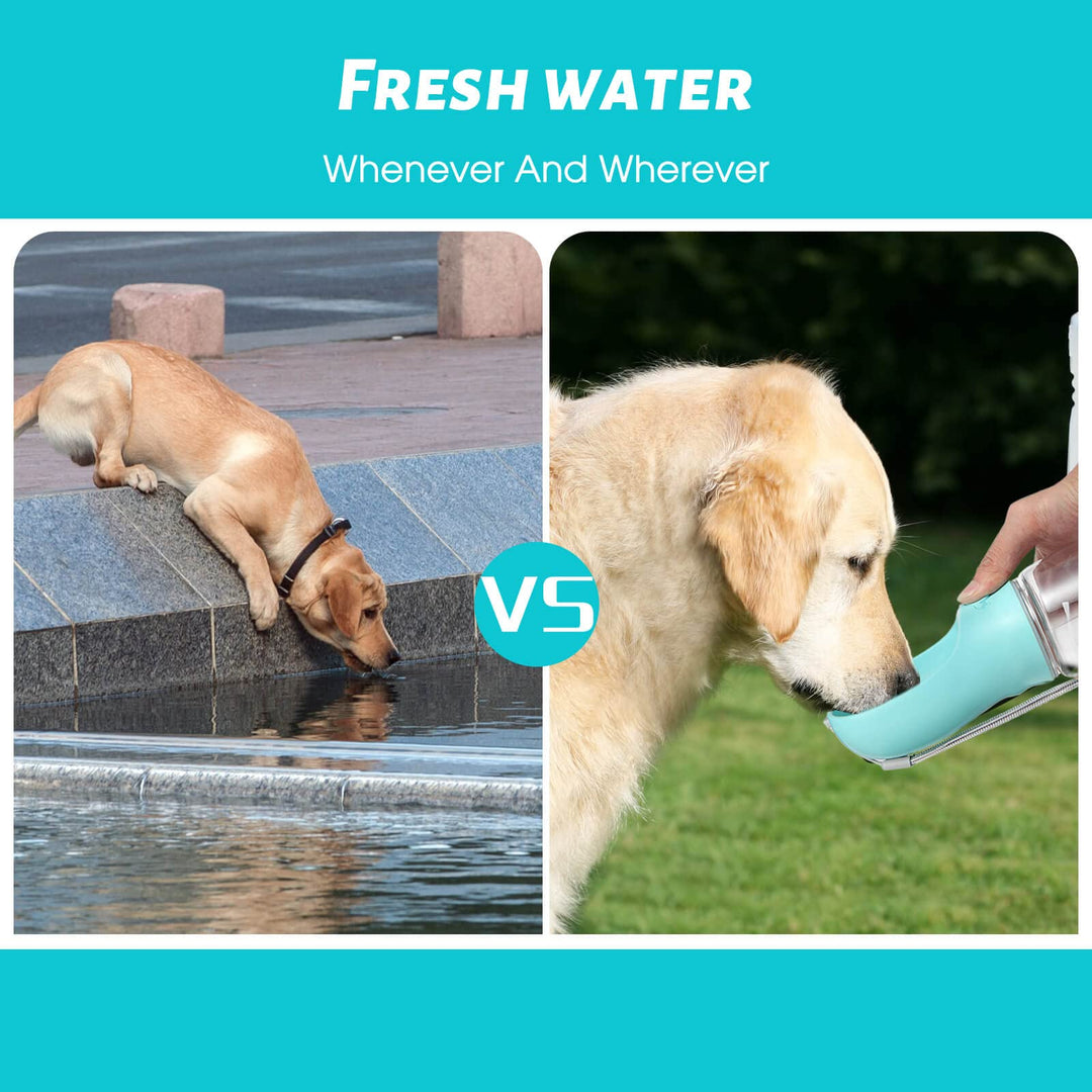 - CONVENIENT TO CARRYDog water bottle enough capacity 19 oz and compact water bottle design is great for your pet dog or cat when outdoor walking, running, hiking, travelling or playing, etc. You can put it into backpack or hang on your hand with sling rope, very easy to carry to anywhere you want~