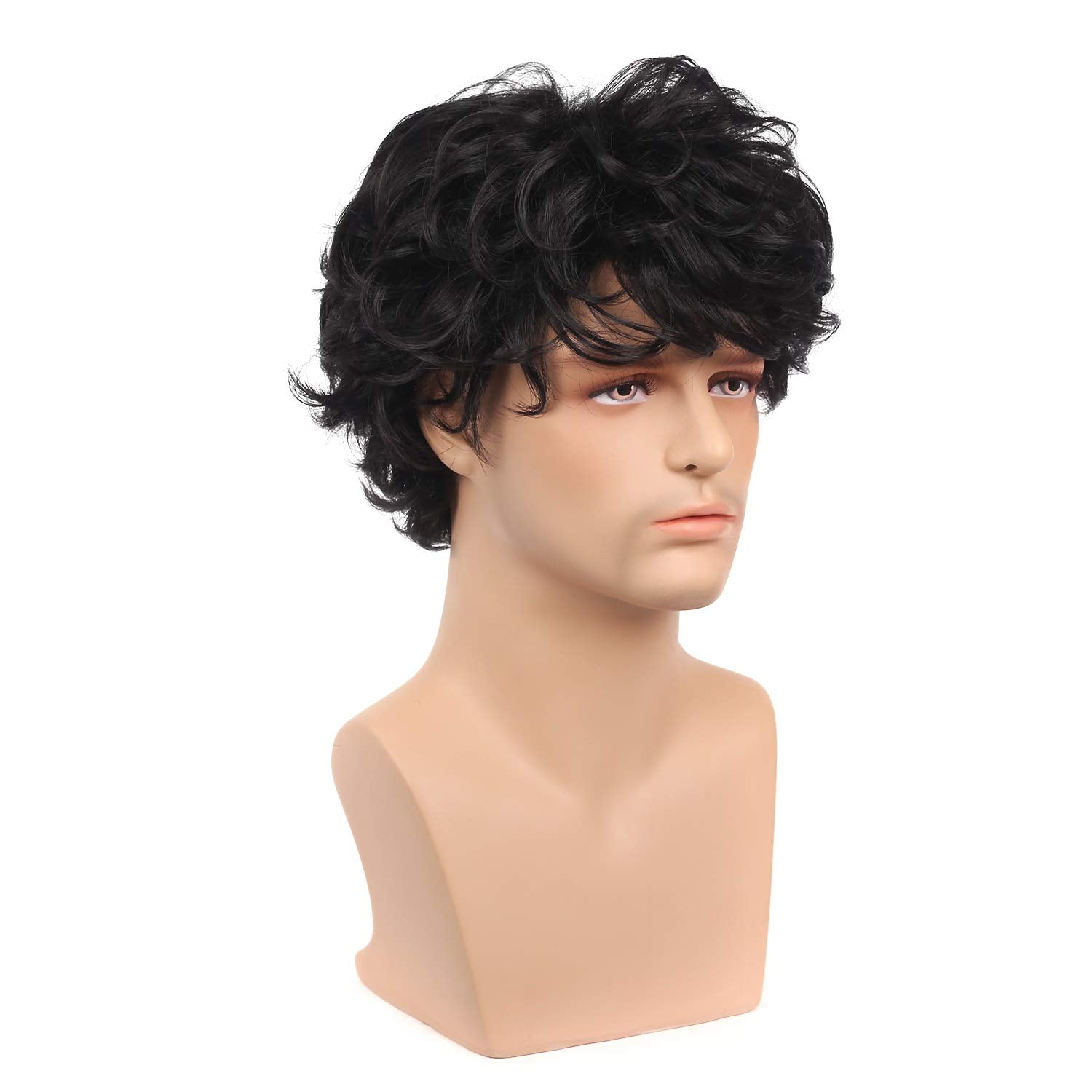 - Original Wigs – Mens Short Curly Black Wig with Bang Costume Halloween Cosplay Party Natural Hair Wig by Kaneles