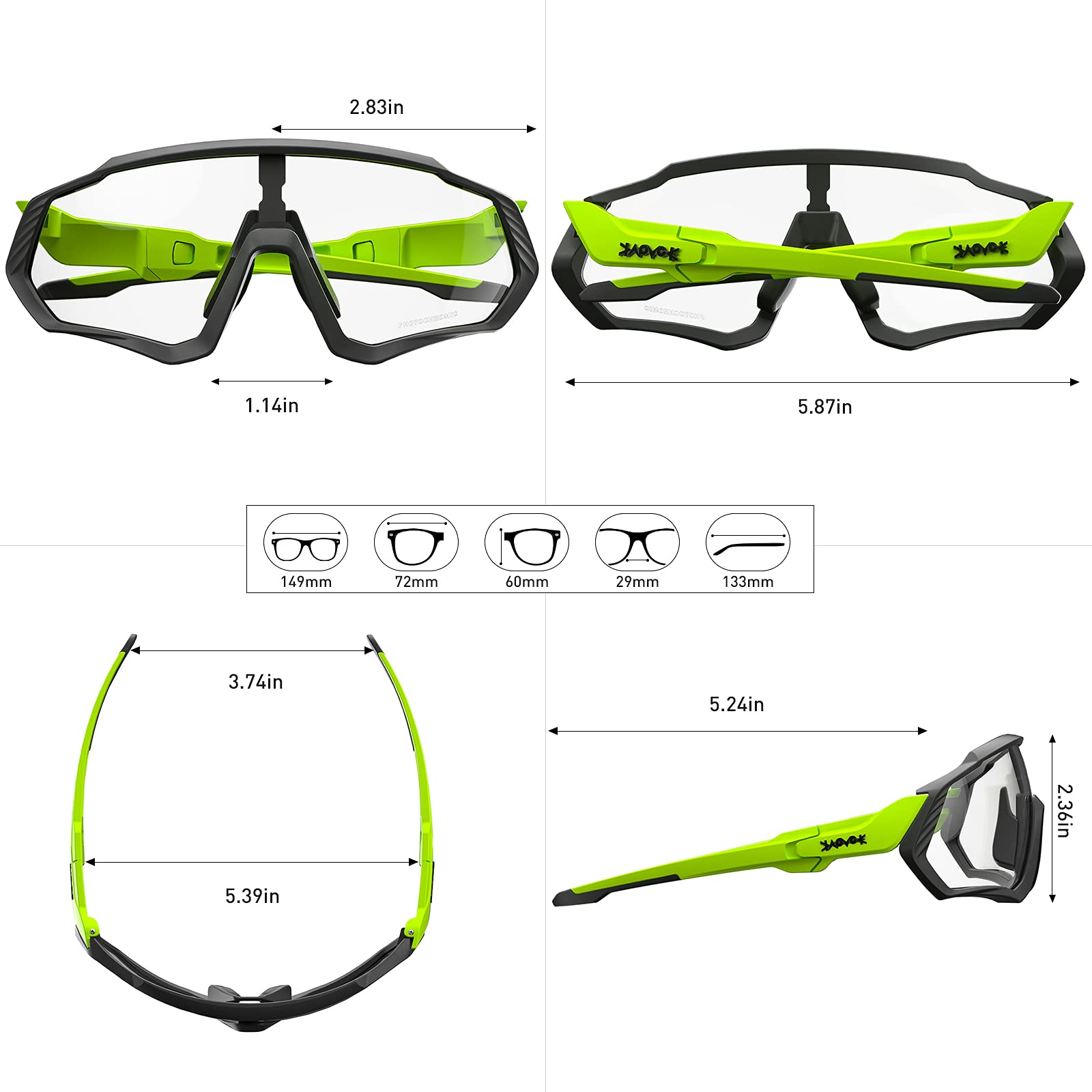 - Comfortable Feeling These photochromic mountain bike glasses are equipped with flexible temples, suitable for different face shapes. Soft rubber nose pads are anti-slip. Built-in myopia frame design, convenient for you to install glasses.
