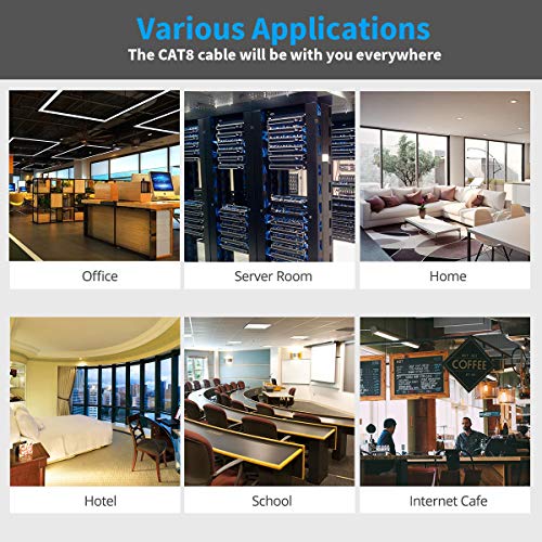 - FLEXIBLE & DURABLE: Features: 1. Gold-plated RJ45 connector, more sensitive & stable; 2. 4Pairs 100% pure & thick Copper wires make sure to reach CAT8 Standard-2000MHz bandwidth and 40Gbps high-speed data transmission; 3. Anti-interference design-- Shielded Foiled Twisted Pair(SFTP) can reduce the interference & signal attenuation effectively; 4. The copper wires are wrapped by thickening and durable outer PVC jacket which is more durable, flexible, toughness for accurate data transfer