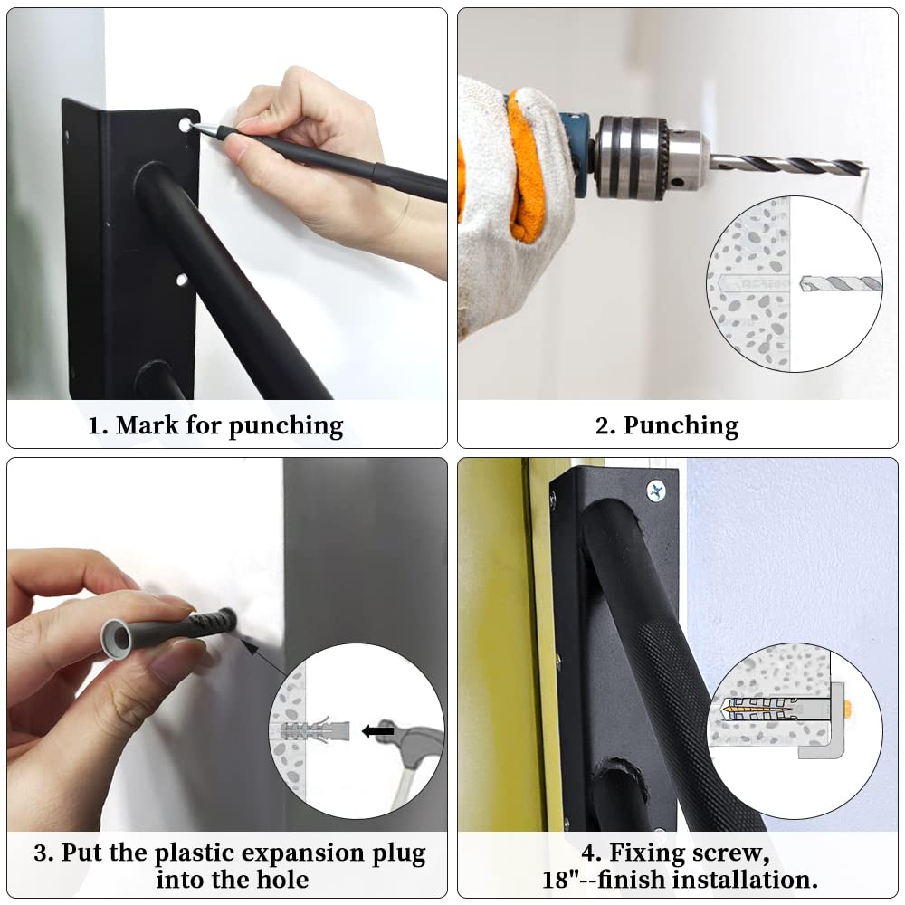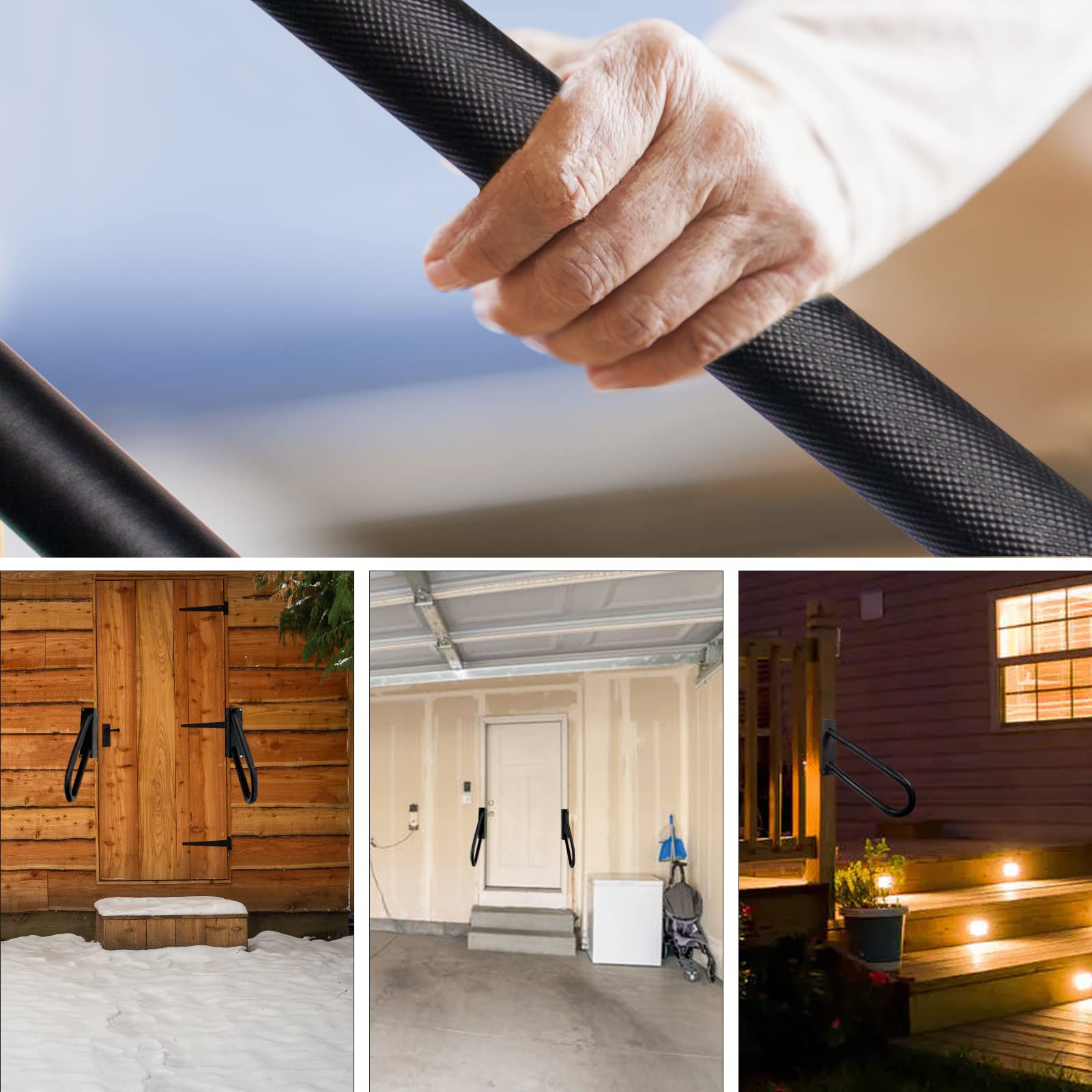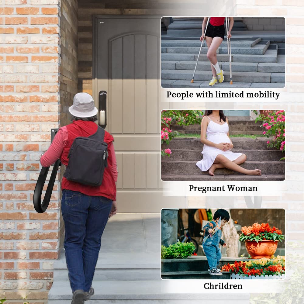 - Original Railings – Handrails for Outdoor Steps,1-2 Steps Hand Rails Outside Inside Stairs,18 Wall Mount Outdoor Indoor Stair Railing with Non-Slip Surface-Black(Right) by Kasla