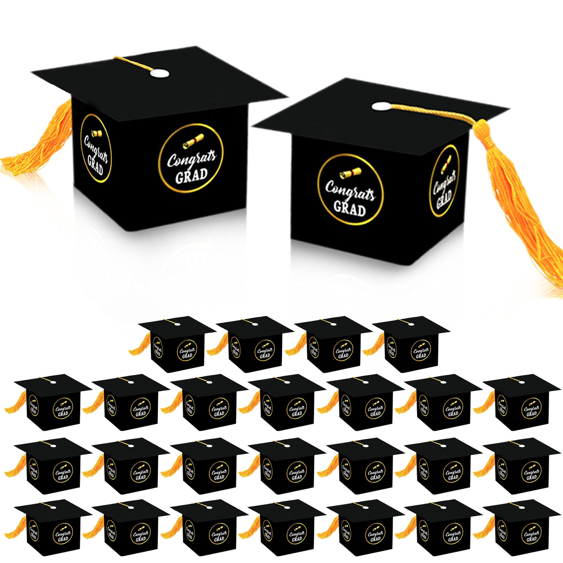 - GIFT BOX WITH BEAUTIFUL TASSELS – Wanting to have an extra-special and a more fun grad party These pack of 25 graduation cap shape gift box are greatly matches the set-up and comes with beautiful gold color tassels. You can use this for college graduation party favor boxes, kindergarten graduation give-away,graduation boxes for candies, chocolate, and graduation favors 2024 for guests can be used many more ways with graduation party decorations 2024!