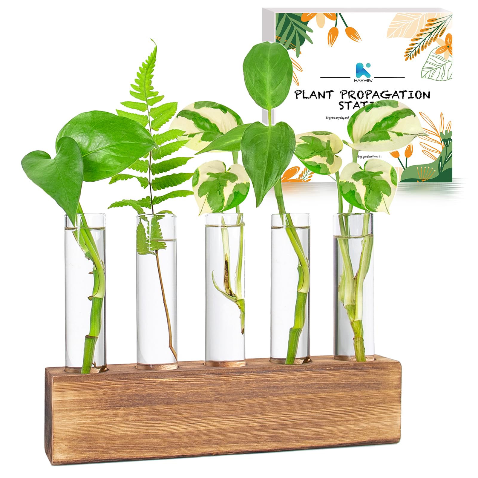 - Unique Design: The Glass Planter Propagation Station with a Wood Stand is perfect for starting an indoor garden. It's easy to use, versatile, and adds a stylish touch to any space, making it a must-have for plant lovers. The glass test tubes are removable, allowing you to easily change and propagate new plants. This makes a great gift for any plant lover! Note: Plants and props are not included.