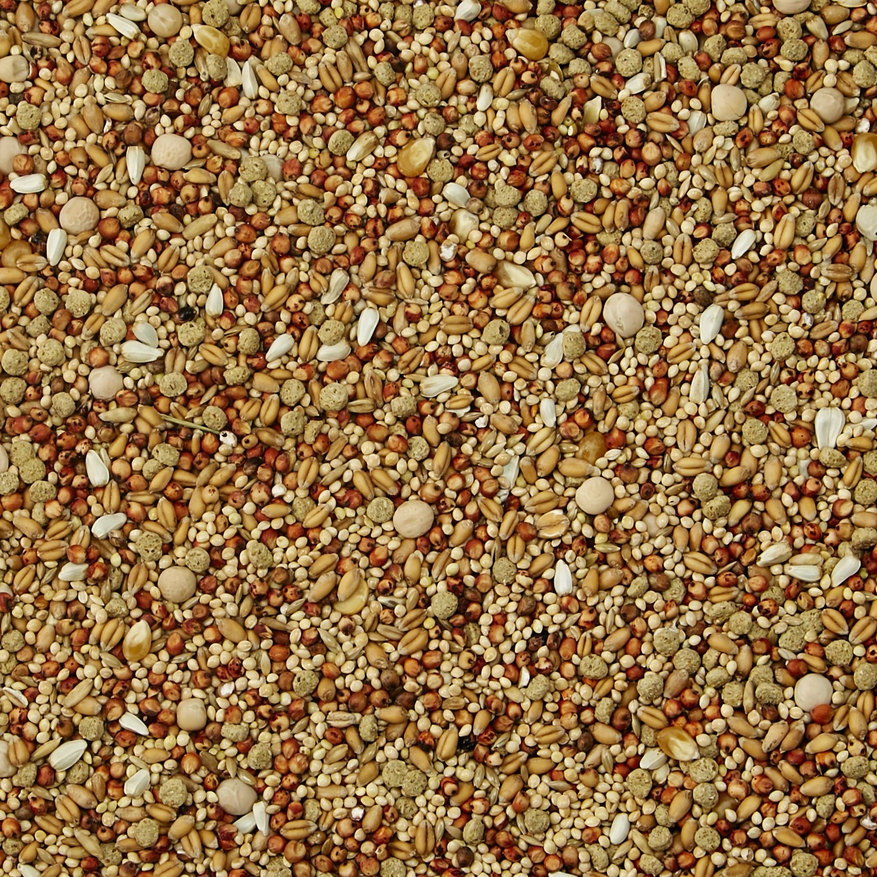 | ingredients | White Millet, Milo, Wheat, Canadian Field Peas, Red Millet, Canary Grass Seed, Popcorn, Safflower, Oat Groats, Ground Yellow Corn, Ground Wheat, Corn Gluten Meal, Wheat Middlings, Dehulled Soybean Meal, Dicalcium Phosphate, Calcium Carbonate, Beet Pulp, Soy Oil, Salt, Fish Meal, DL-Methionine, Brewers Dried Yeast, L-Lysine, Choline Chloride, Vitamin B12 Supplement, Vitamin E Supplement, Ferrous Carbonate, Zinc Oxide, Riboflavin Supplement, Manganous Oxide, Menadione Sodium Bisulfite Complex (source of vitamin K activity), Niacin, Calcium Pantothenate, Copper Oxide, Vitamin A Supplement, Cholecalciferol (source of vitamin D3), Pyridoxine Hydrochloride, Thiamine Mononitrate, Calcium Iodate, Cobalt Carbonate, Folic Acid, Biotin, Sodium Selenite. |