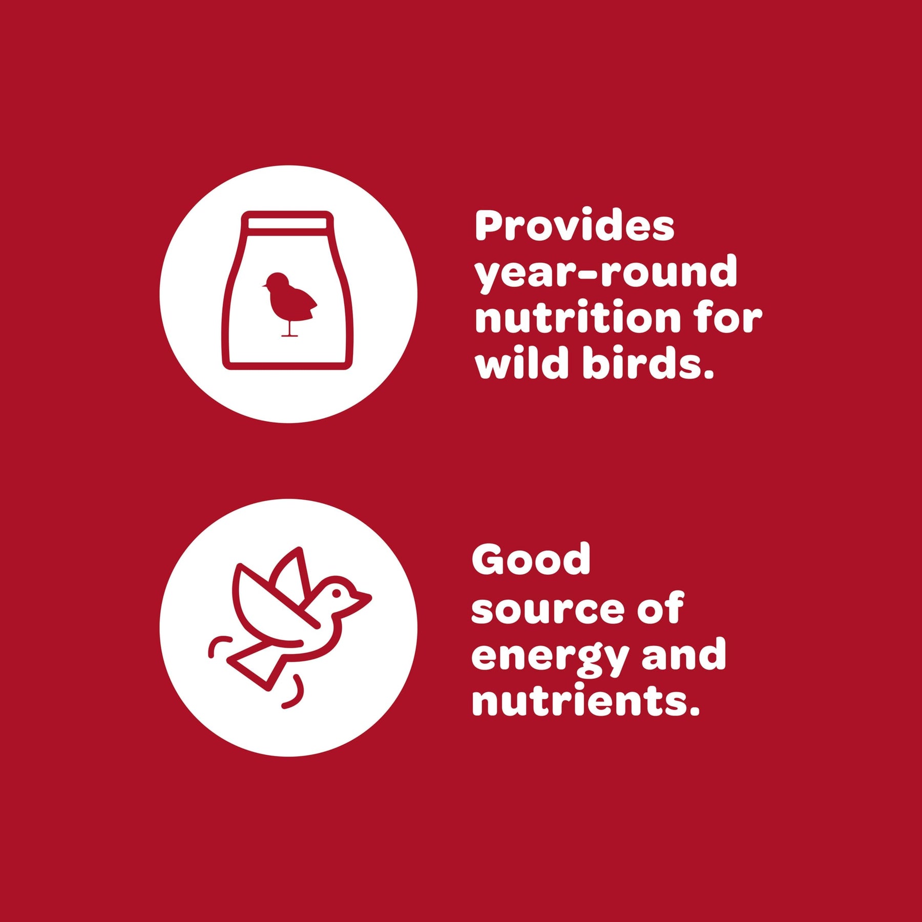 - Sunflower chips and other small grains added to provide a nutritional mix that birds love