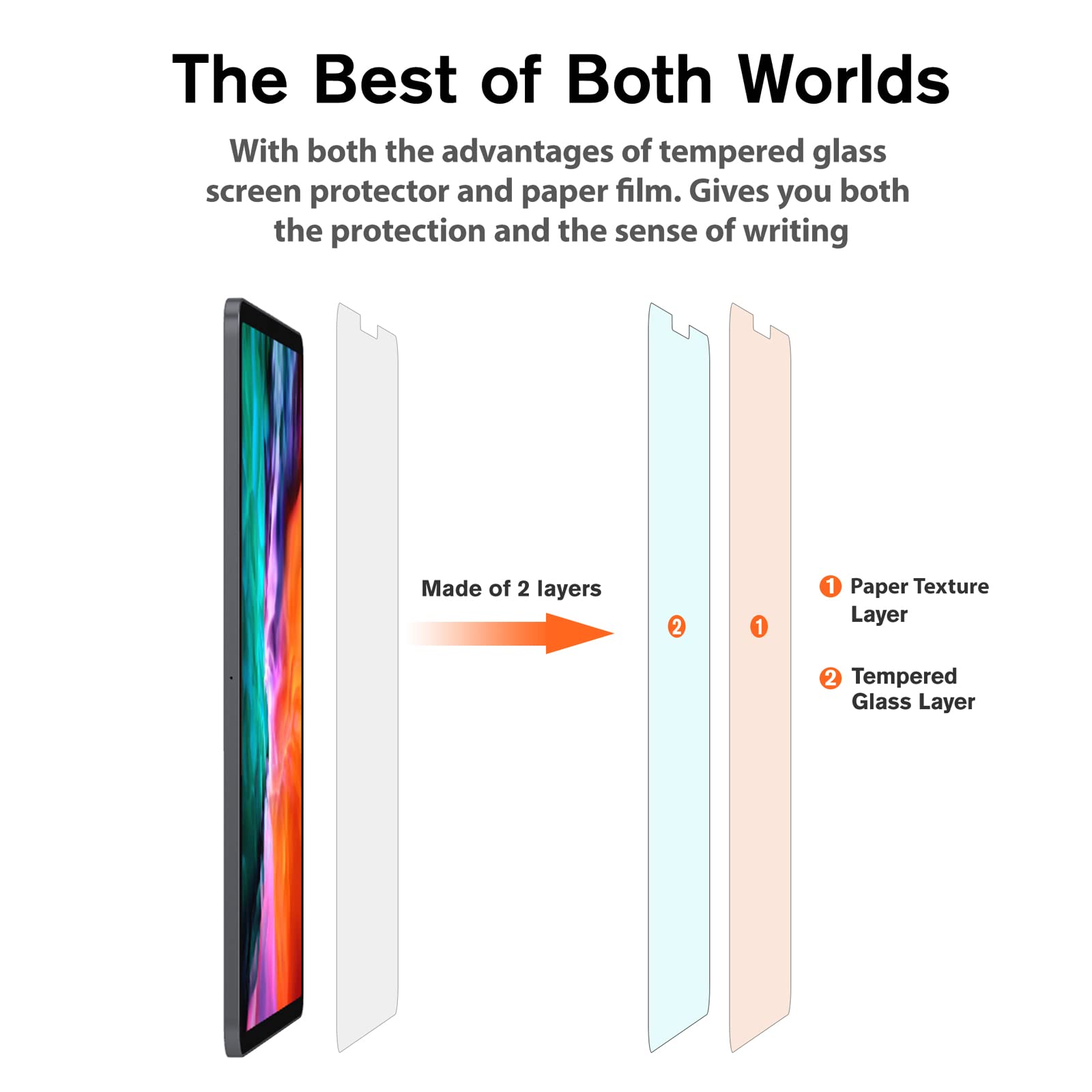 - Shatterproof: Paperfeel and Tempered Glass are now combined into one screen protector. You do not need to make a choice between paperfeel and protection. Also you do not need to use 2 pcs screen protectors on your tablet. Paperfeel Glass can meet your dual needs of protection and writing. Tempered glass layer can effectively cushion the impact of heavy objects to protect your tablet screen