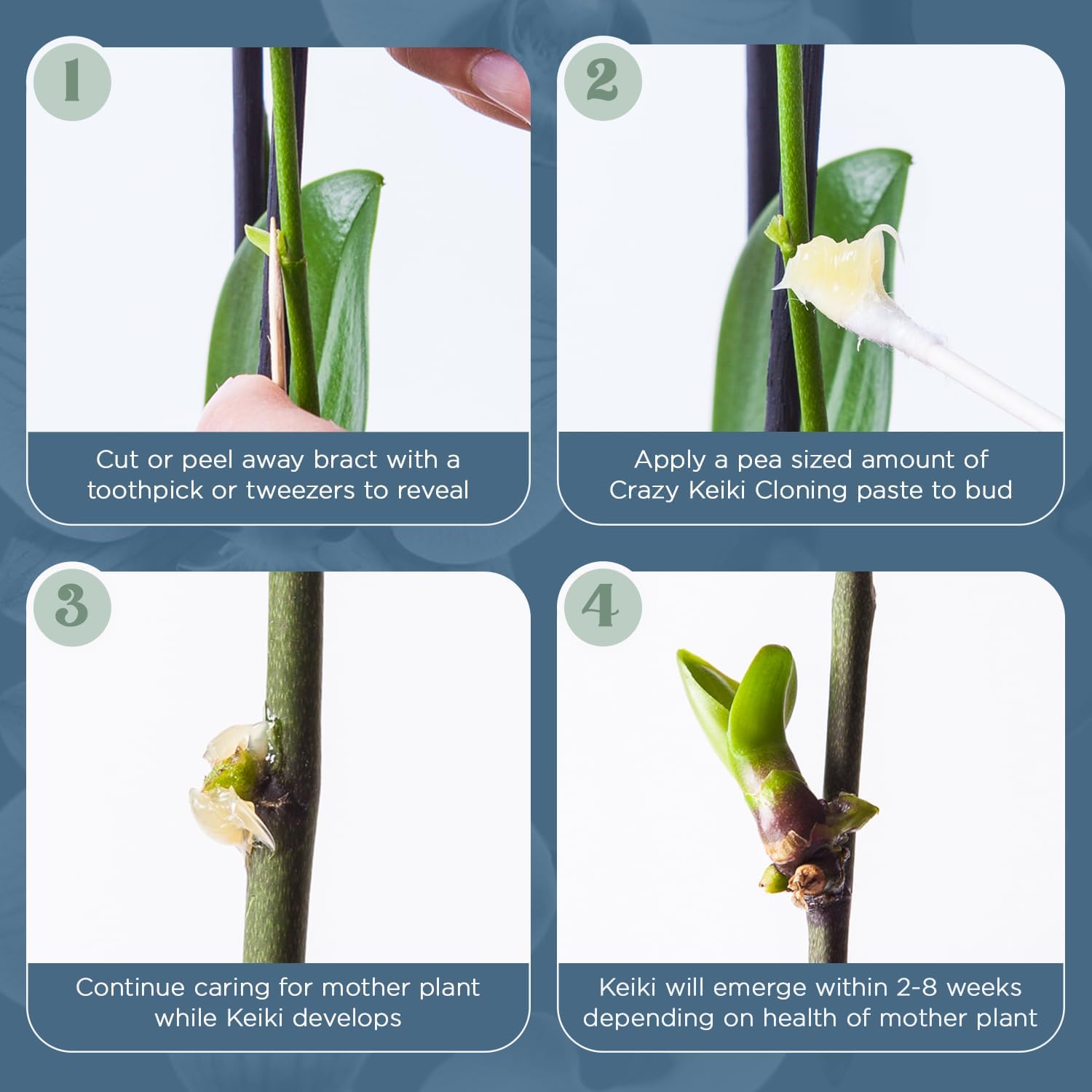 - Genuine Crazy Keiki Cloning Paste for new growth on your houseplants, helps your orchids bloom again & makes new orchids. Blend of lanolin, cytokinins, and vitamins for maximum results and healing. Includes one 8g vial, applicator swabs, and a QR code to detailed instructions. Made in the USA!