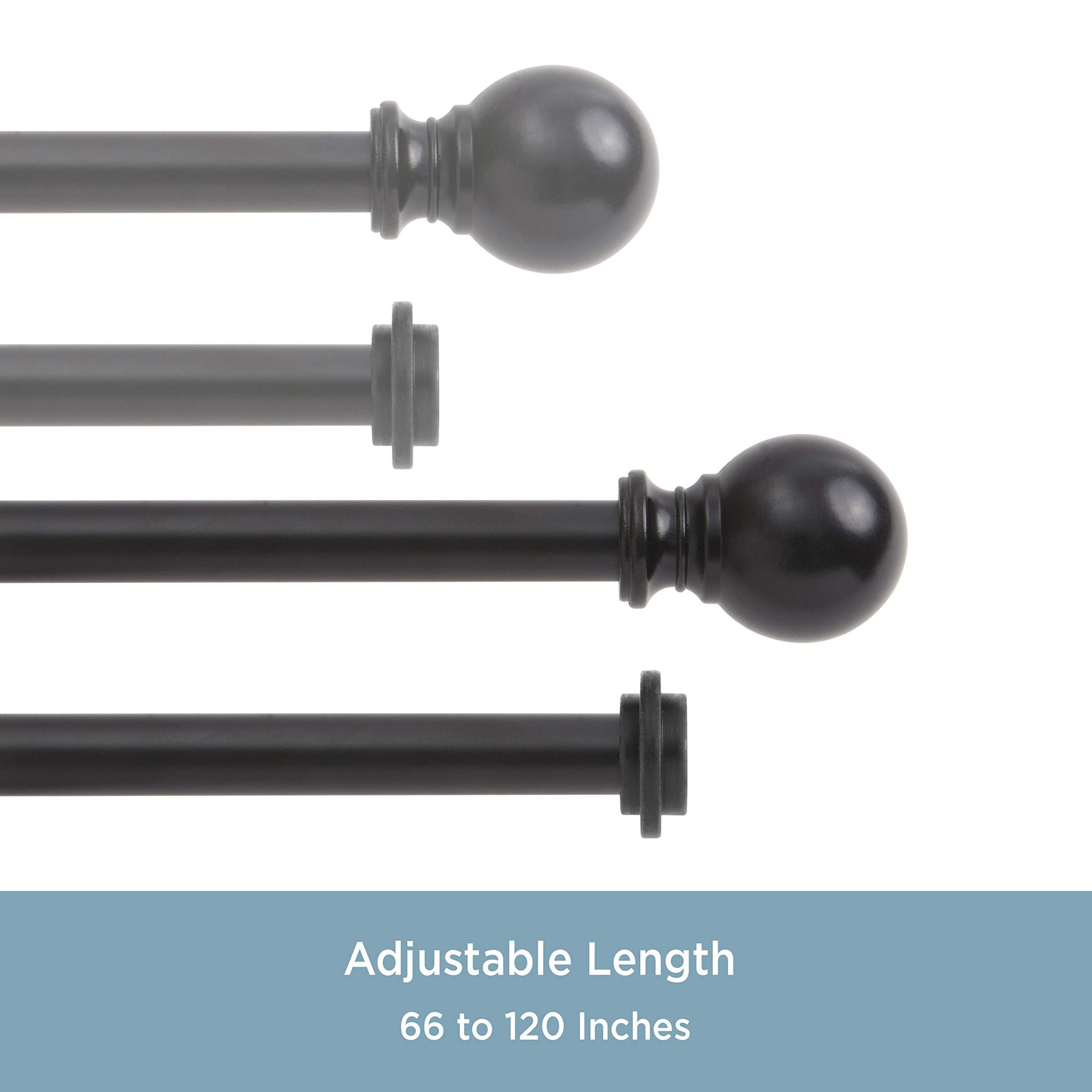 - Original Double Rods – KN75918 Ball End Standard Decorative Window Double Curtain Rod, 66-120 Adjustable Length, Matte Black Finish, 5/8 Diameter Steel Tubes by Kenney