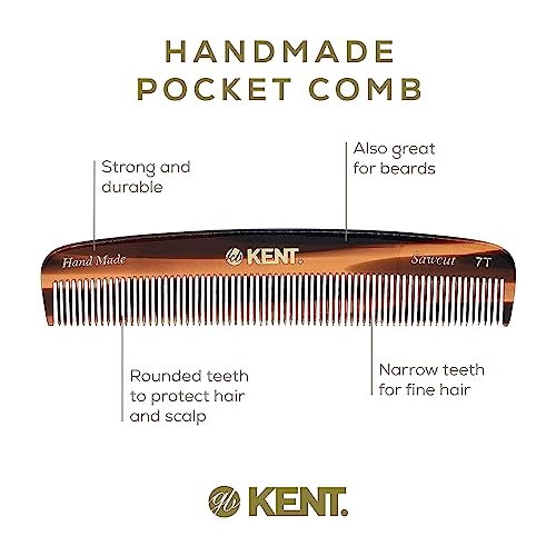 - Original Hair Combs – Kent 7T Handmade All Fine Tooth Pocket Comb for Men, Hair Comb Straightener for Everyday Grooming Styling Hair, Mustache and Beard, Use Dry or with Balms, Saw Cut and Hand Polished, Made in England by KENT