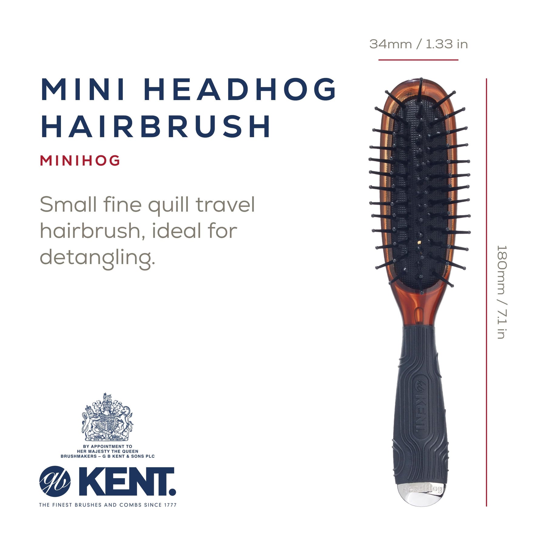 - Original Hair Brushes – Kent KB Minihog Headhog Detangling Travel Hair Brush, Black Rubber Cushion Detangler Brush and Scalp Brush with Firm Rounded Plastic Bristles for Women Men and Kids Everyday Care, Made in England by KENT