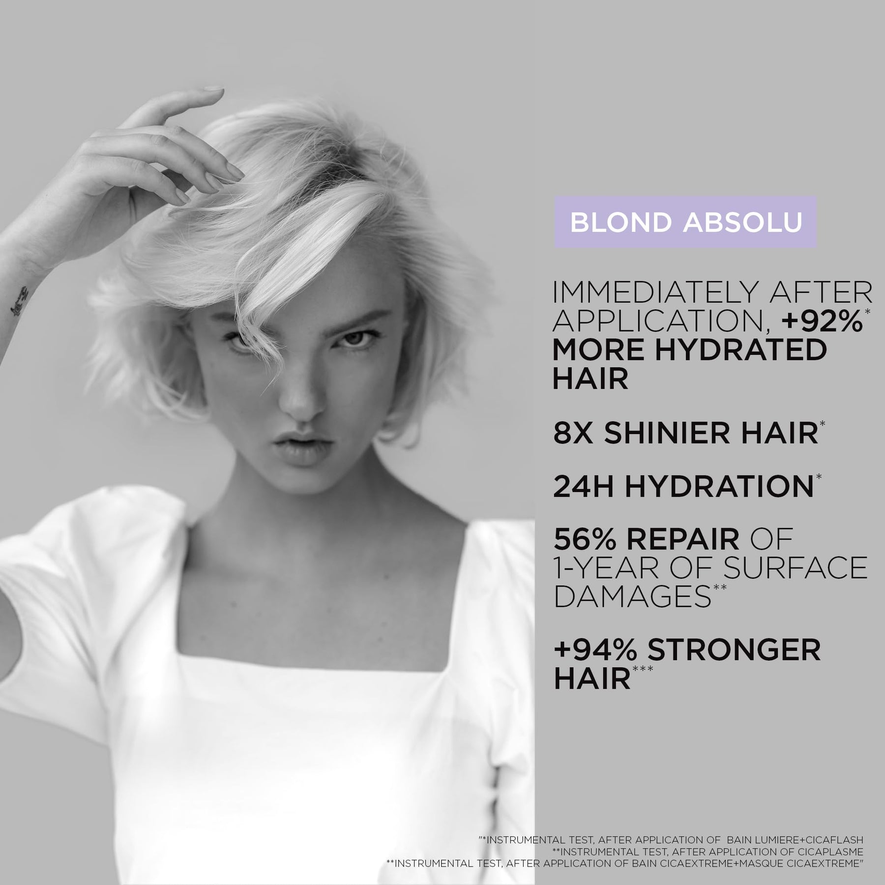 - Blond Absolu: Complete your blonde care regimen with the Blond Absolu range which maintains cool tones with ultra-violet anti-brass action hydrates and restores hair fibers and illuminates hair from within