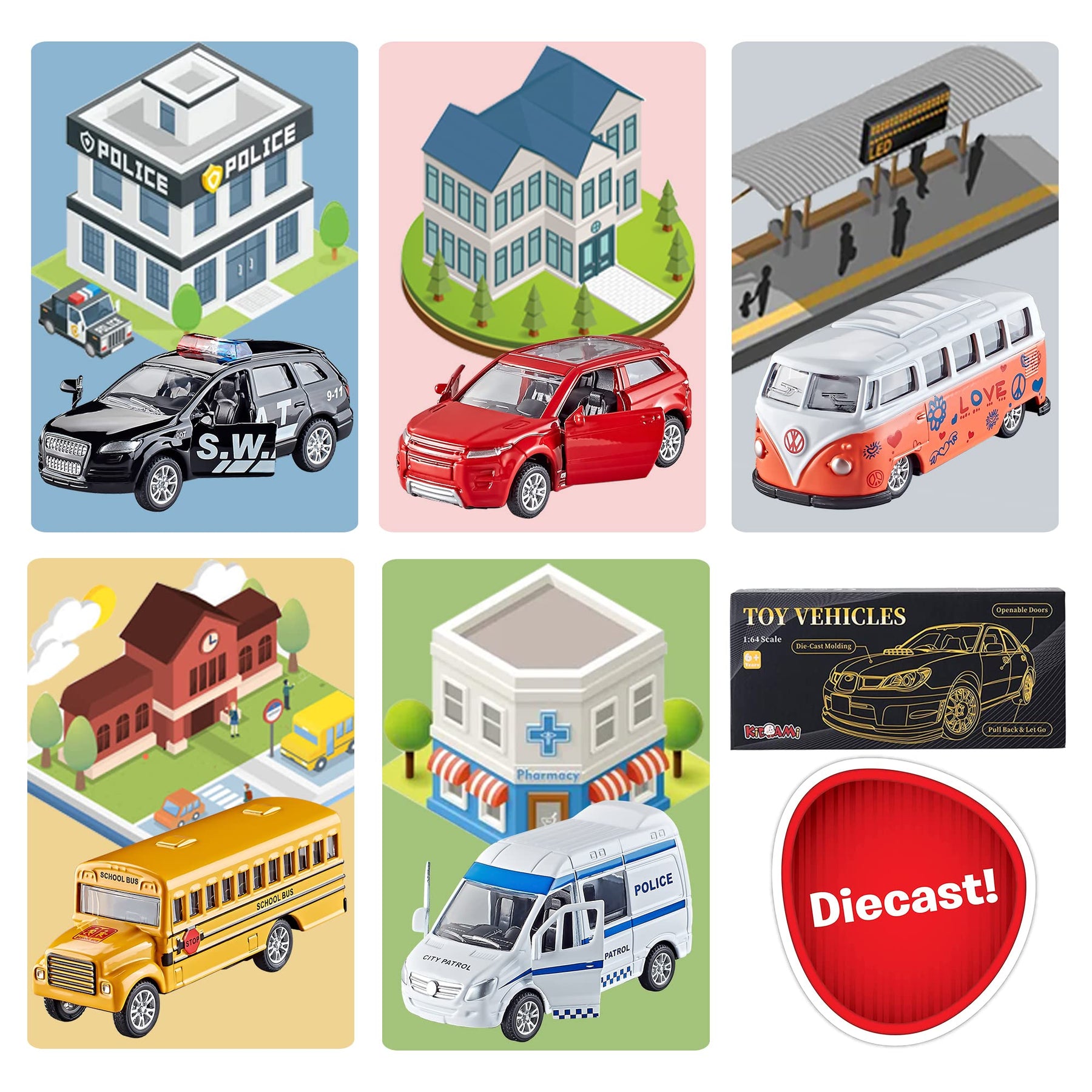 - VIBRANT COLORS: Multiple types and vibrant colors. This gift pack includes lovely van, school bus, police car and more