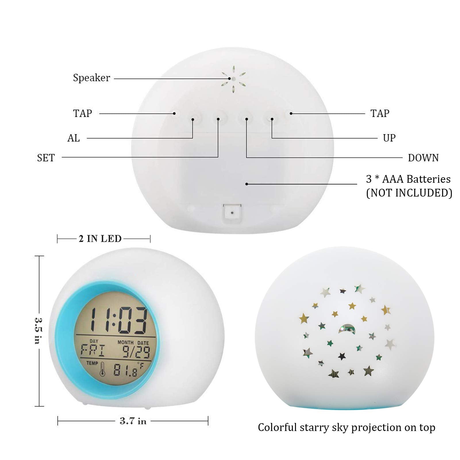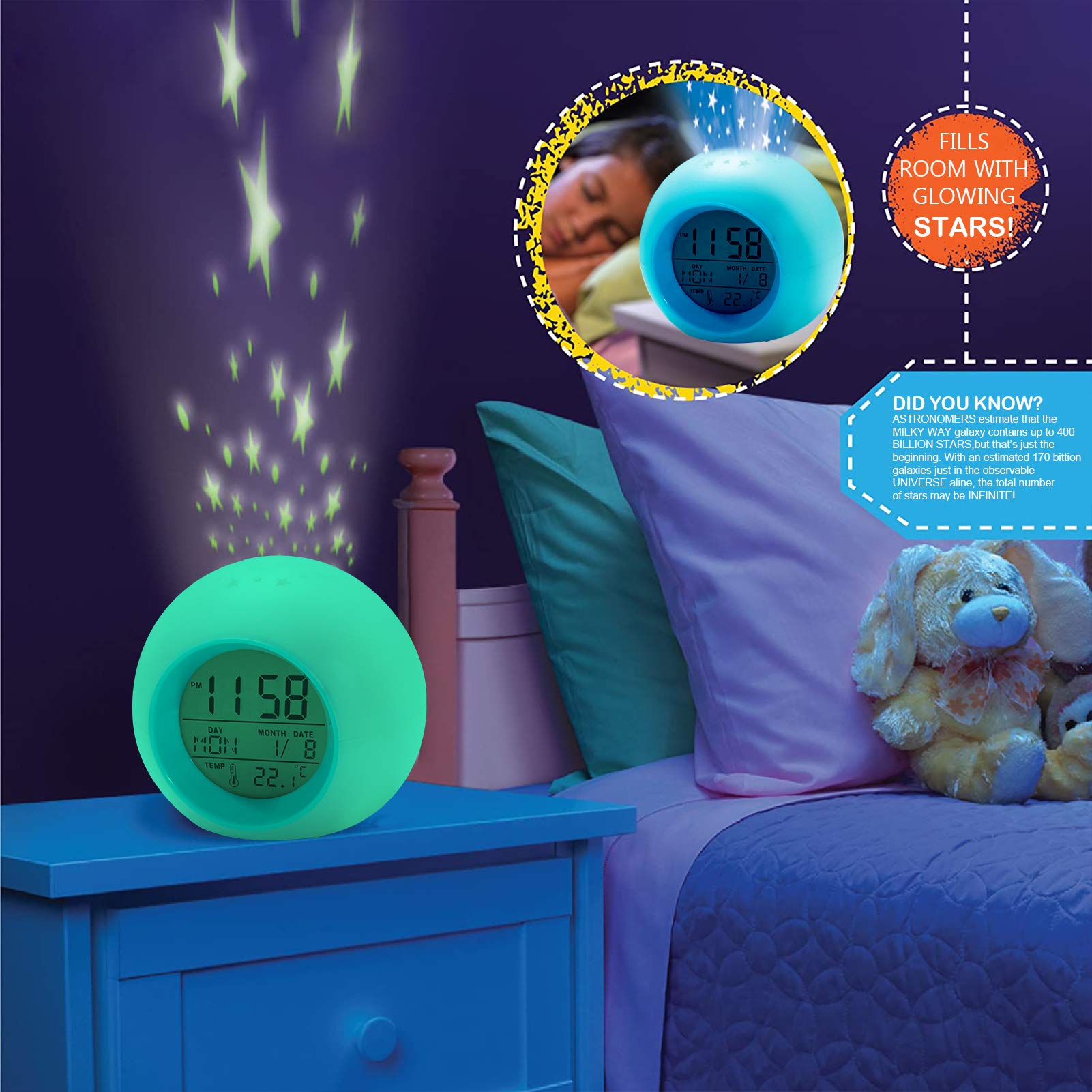 - Original Alarm Clocks – Kids Alarm Clock,Moon Stars 7 Color Changing Night Light Projector Alarm Clock,Temperature Detect for Toddler Digital Kids Alarm Clock,Students to Wake up at Bedroom Bedside for Alarm Clock Boys Girls by Tarklanda
