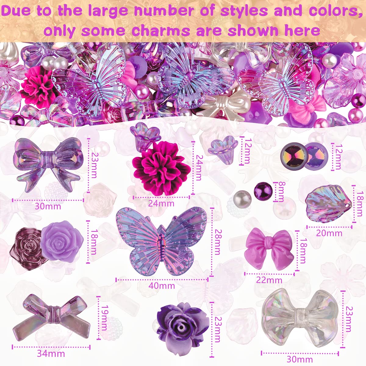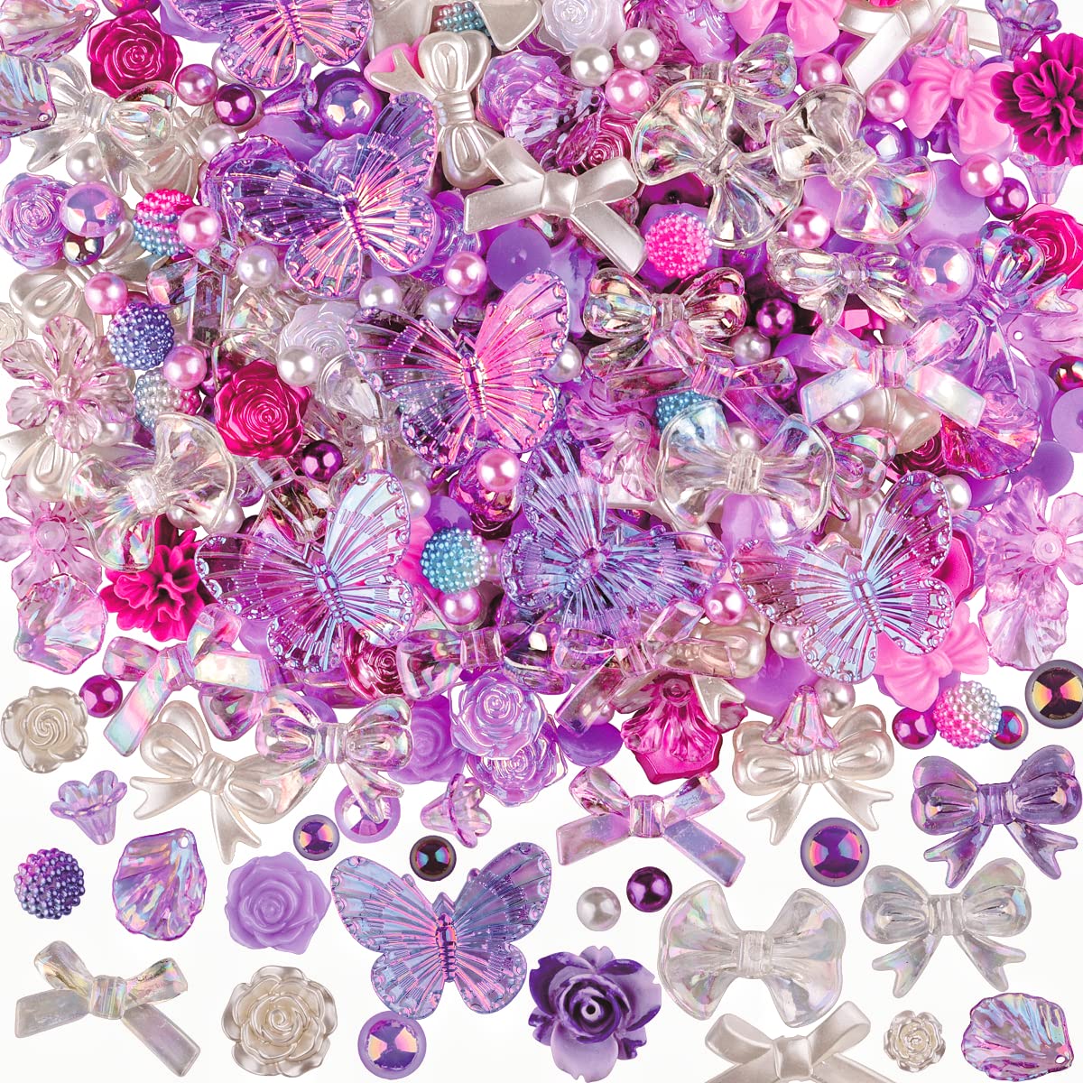 - Original Beads & Bead Assortments – Kikonoke 350 Pieces 3D Resin ABS Colorful Rose Flower Bows Butterfly Charms with Flatback Half Round Pearl Beads for Bracelet Earring Necklace Craft DIY Making Supplies (Purple) by kikonoke