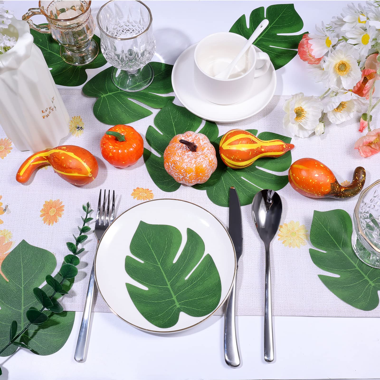 - Original Artificial Plants & Greenery – 24 Pcs 8 Inch Artificial Palm Leaves, Tropical Faux Leaves Green Faux Monstera Leaves for Hawaiian Luau Jungle Party Safari Birthday Table Decorations (M) by KINBOM