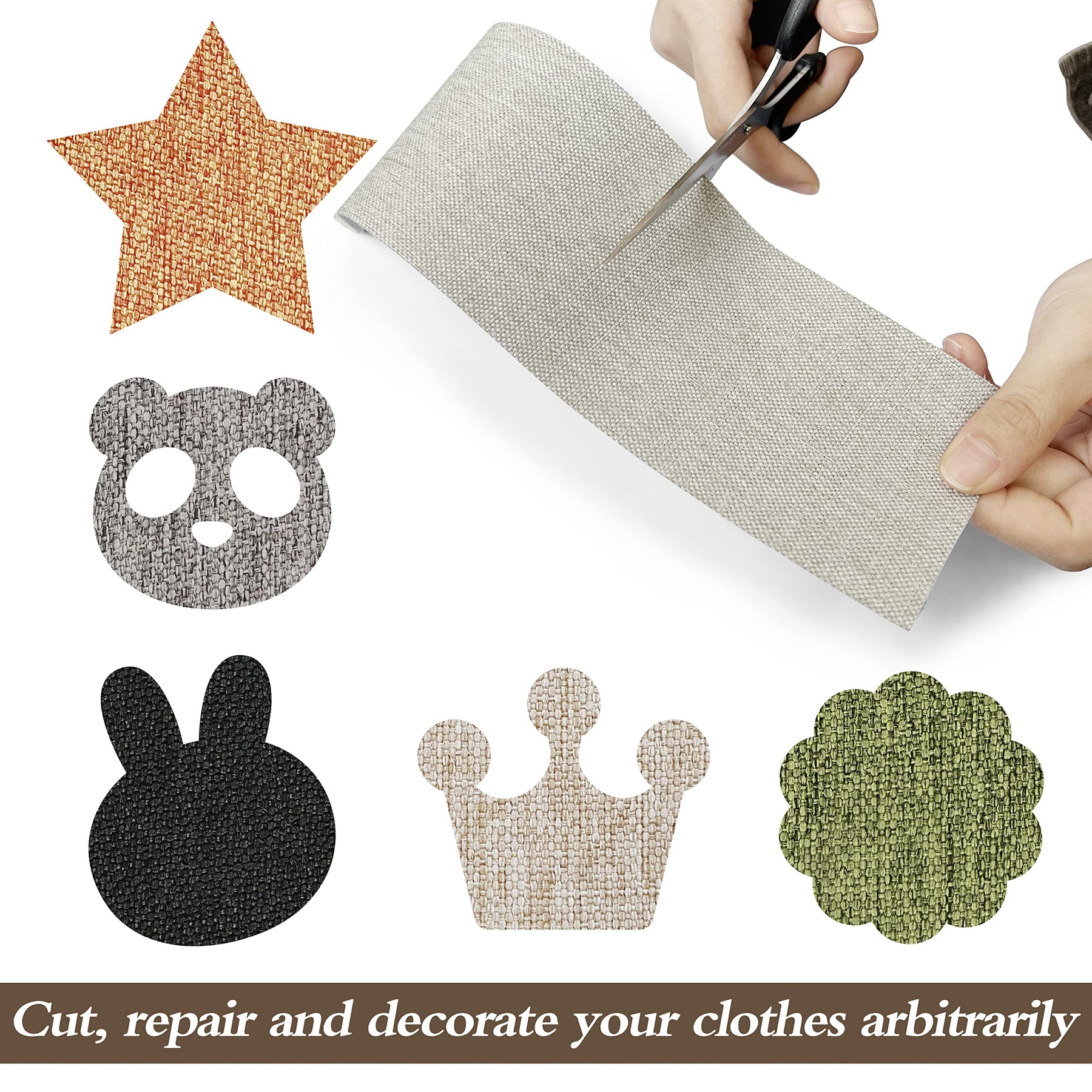 - DlY FABRIC PATCH: Enough size and quantity for you to play with your unlimited creativity. With either scissors or shape cutters, cut the patch to the size or shape you want. Design to decorate your favorite clothes.This fabric patch is good for both inside and outside,and after a few more washes the glue disappears, but the patch still stays on the clothes firmly.