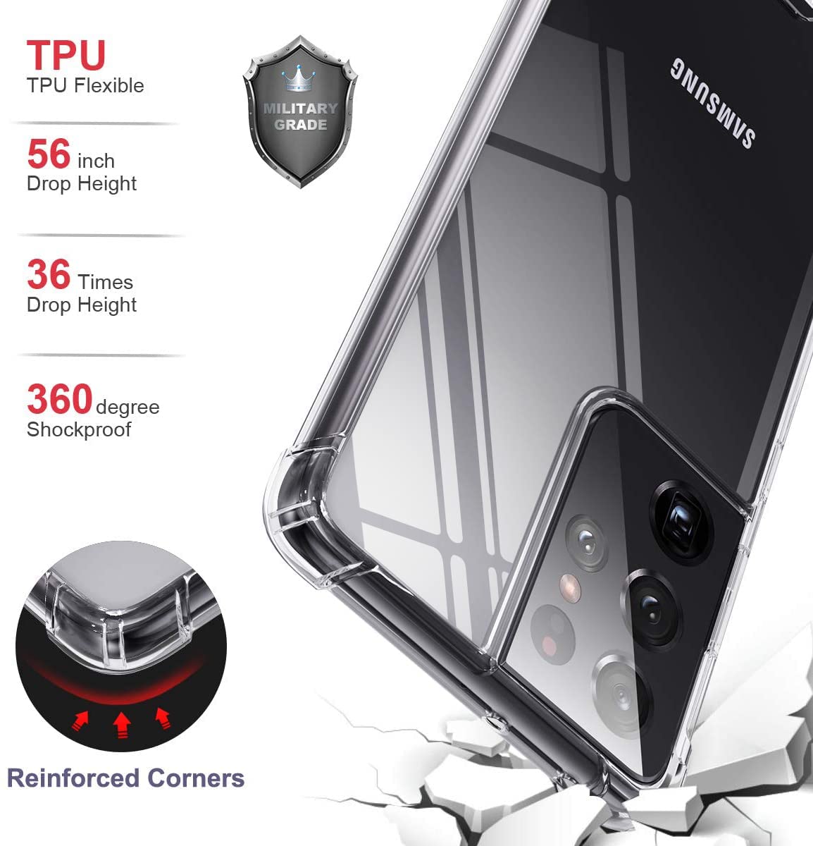 - Original Basic Cases – Clear Case for Samsung Galaxy S21 Ultra 5G Hybrid Design Shockproof Bumper Protective Cell Phone Back Cover Hard PC Back + Flexible TPU Raised Bezel with Airbags Corners by KIOMY