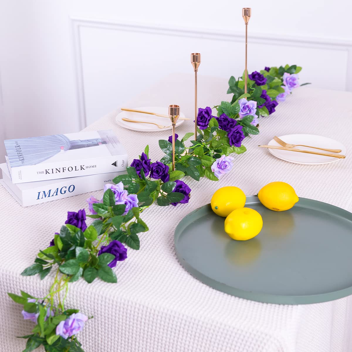 - Original Artificial Flowers – 3Pack Artificial Rose Flower Garland, 23.7FT Fake Vines Silk Flowers Hanging Rose Ivy for Wedding Arch Decorations Room Party Home Garden Hotel Office Wall Decor (Purple) by Kisflower
