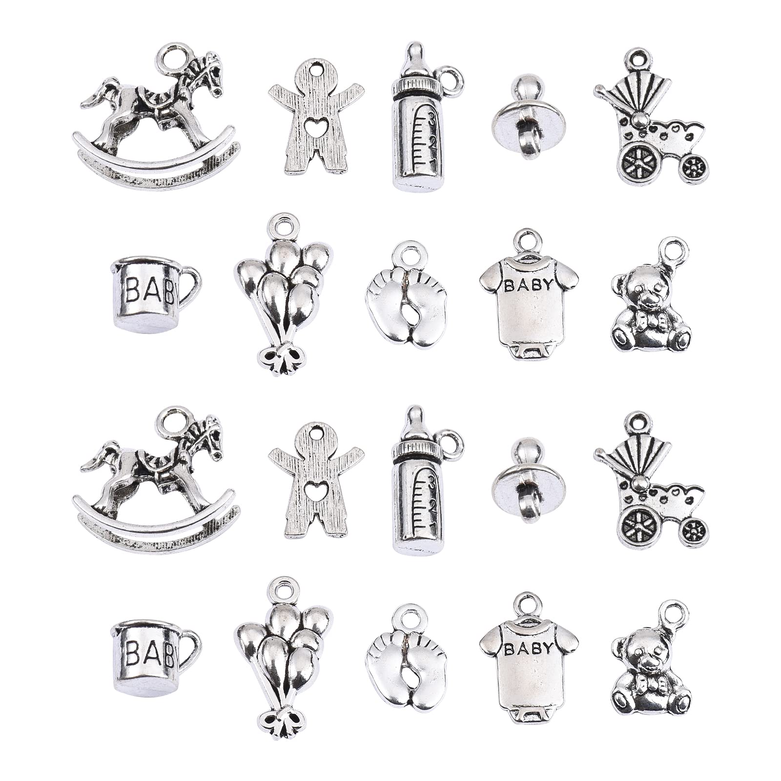 - Original Charms – 100pcs Baby Theme Charms Alloy Rocking Horse Baby Bottle Ginger Bread Man Toy Tibetan Baby Charms for Jewelry Making Bracelets by KitBeads