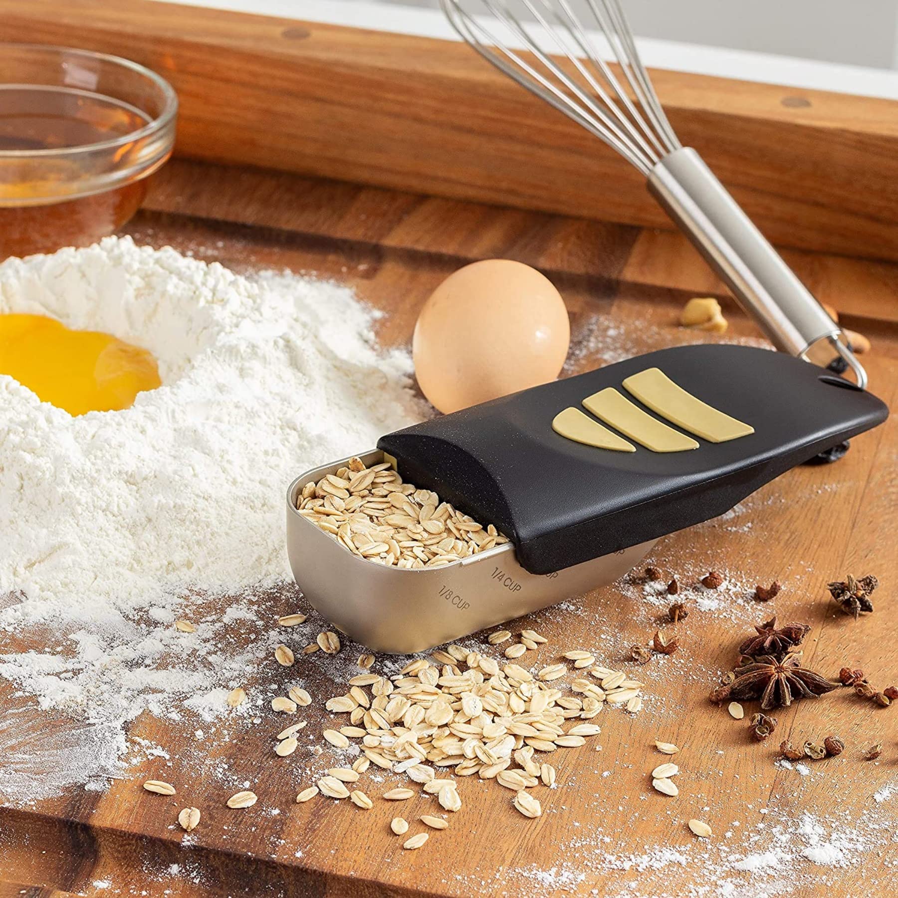 - Adjusts to measurements of 1/8 cup up to 1/2 cup