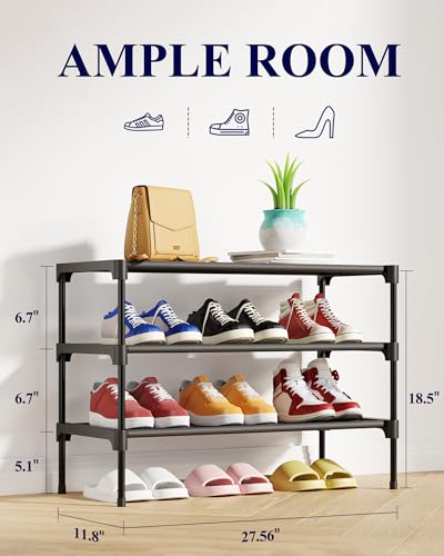 - Original Free Standing Shoe Racks – Shoe Rack - Premium Non-Woven Shoe Rack Shelf, Shoe Organizer for Closet, Entryway, Garage & Corridor, Sturdy & Durable Long Stackable Shoe Shelves, Medium, Black by Kitsure