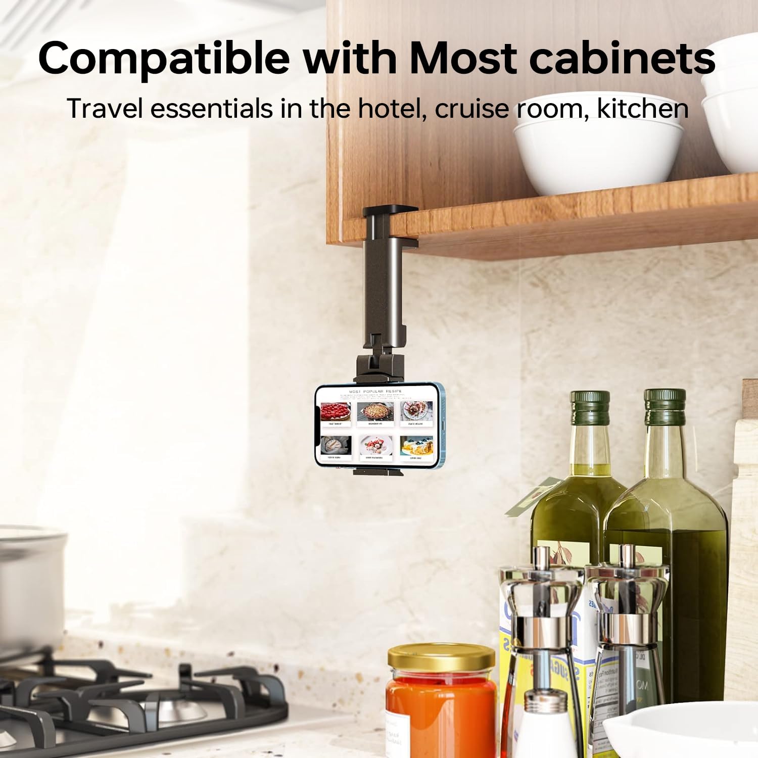- Mount It Everywhere With a foldable feature, the cruise travel phone holder is compact and can be carried around. You can mount your phone to a table tray, luggage handle, desktop, bed, kitchen cabinet, shelf, chair, etc.