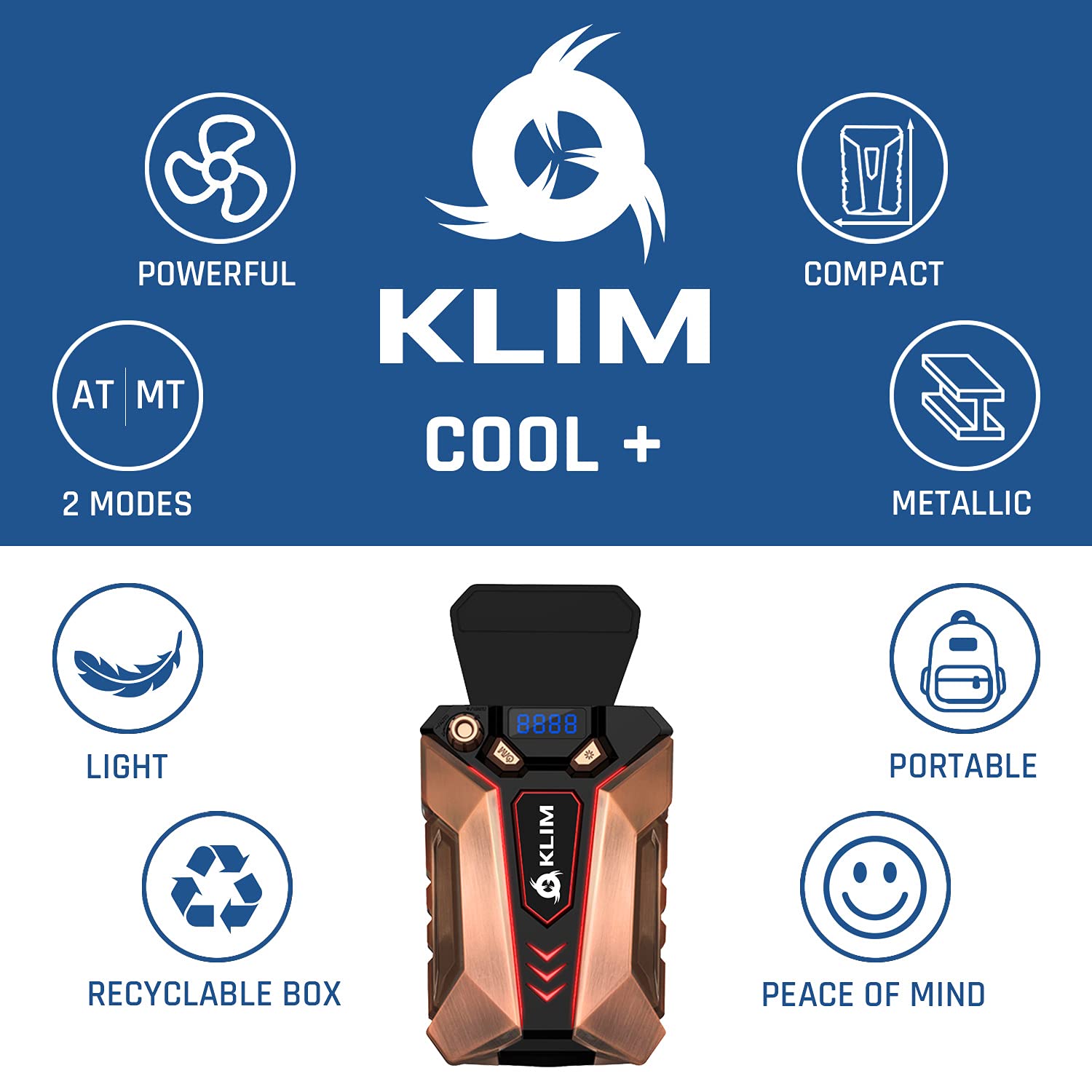 - DESIGNED FOR MAXIMUM COOLING. The KLIM Cool+ is 20% more efficient than the KLIM Cool due to its slightly larger size and faster fan. The maximum speed is 4500 RPM. Its metal structure serves as a heat sink, increasing its efficiency. Our lab tests show an average temperature reduction of 69.26°F.