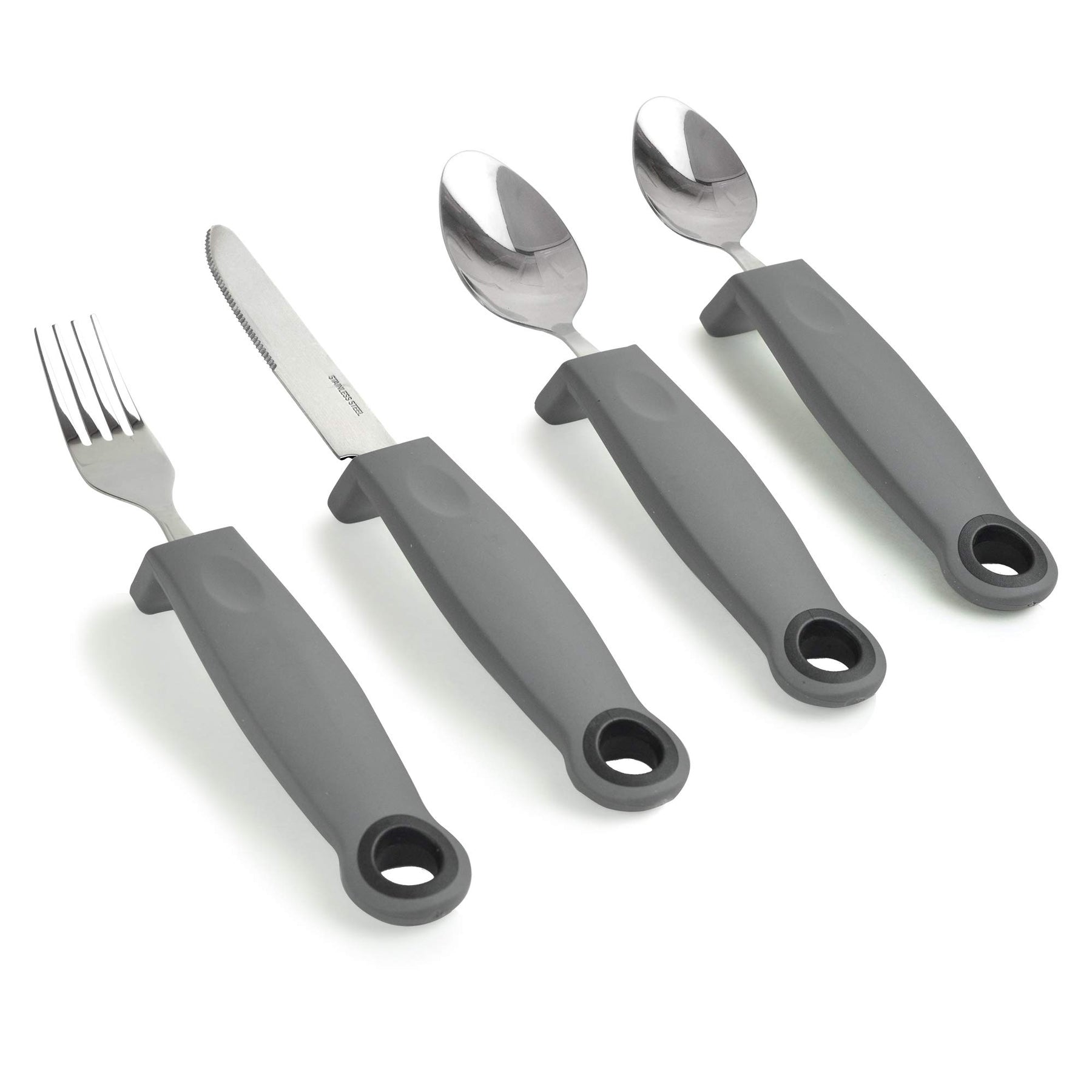 - Original Utensils – KMD Adaptive Utensils Set with Weighted and Self-Standing Handles (4-Piece), Fork, Knife, and 2 Spoons for Arthritis, Parkinson’s, Tremors, Elderly or Disabled (Gray) by KMD SIGNATURE SOLUTIONS