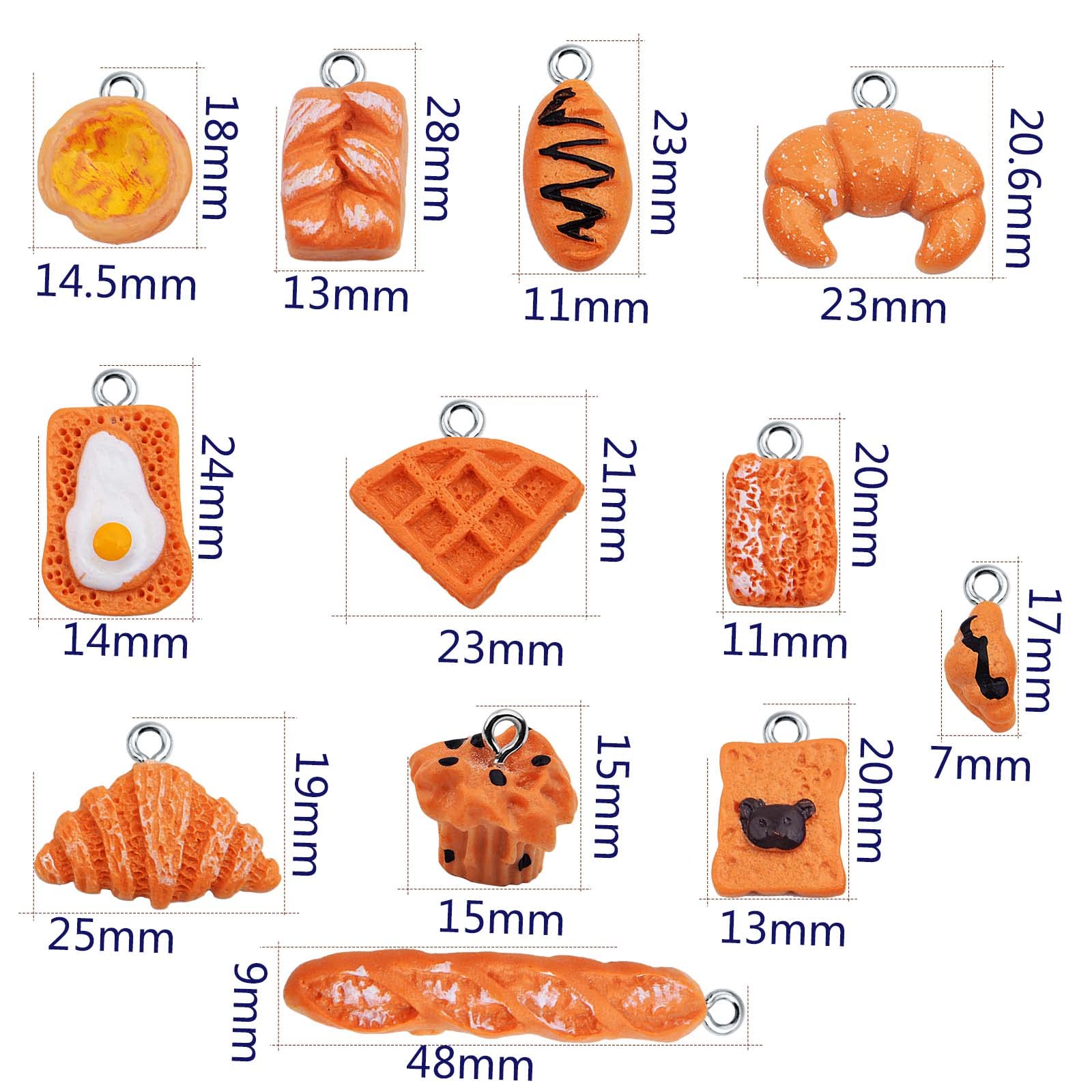 - MIXED FOOD CAKE CHARMS: All kinds of artificial bread pendants are very cute, and there are many types to choose from, which can be used to make earrings, necklaces, key chains, lamp decorations, etc.