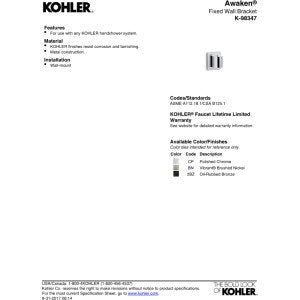 Discover the authentic 98347-CP Awaken Fixed Wall Bracket, Polished Chrome by KOHLER, part of our Shower Arms & Slide Bars collection. Imported directly from the USA and sourced from trusted suppliers, this product is 100% authentic and delivered anywhere in India at the best price.