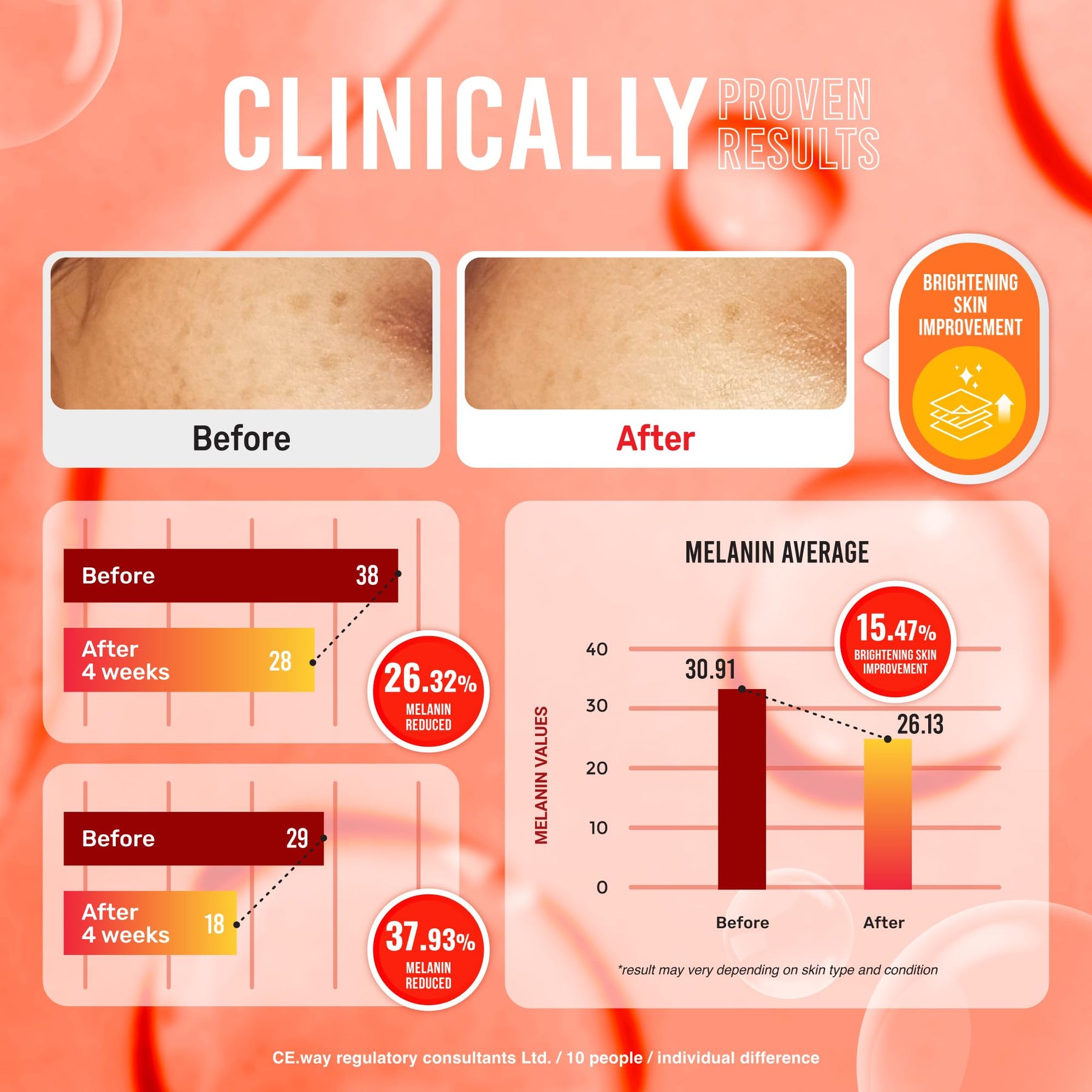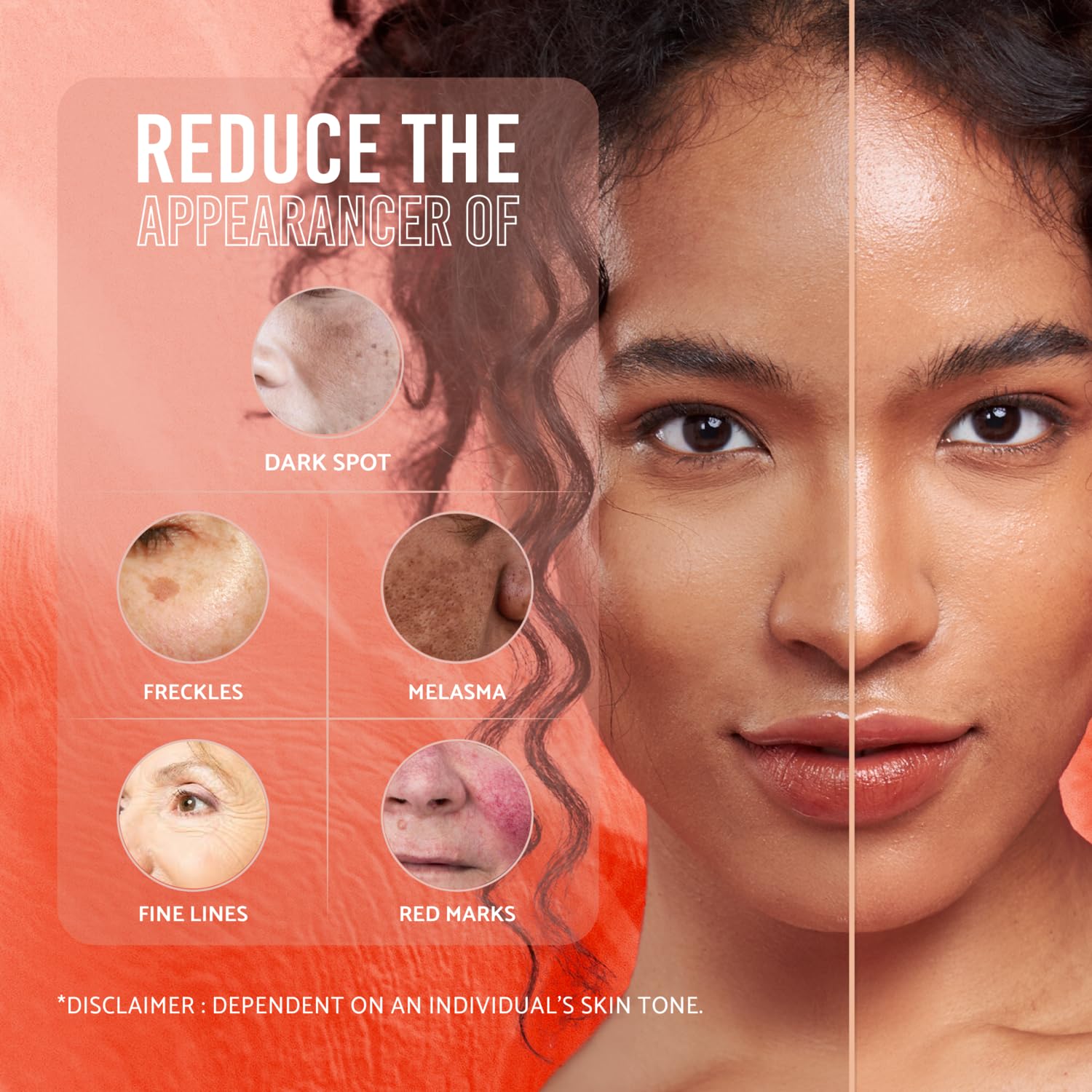 - [ BRIGHTENING BENEFITS ] Powered by 5% Kojic Acid and 1% Vitamin C, this advanced formula helps to visibly reduce the appearance of pigmentation, dark spots, freckles, melasma, fine lines, and red marks.