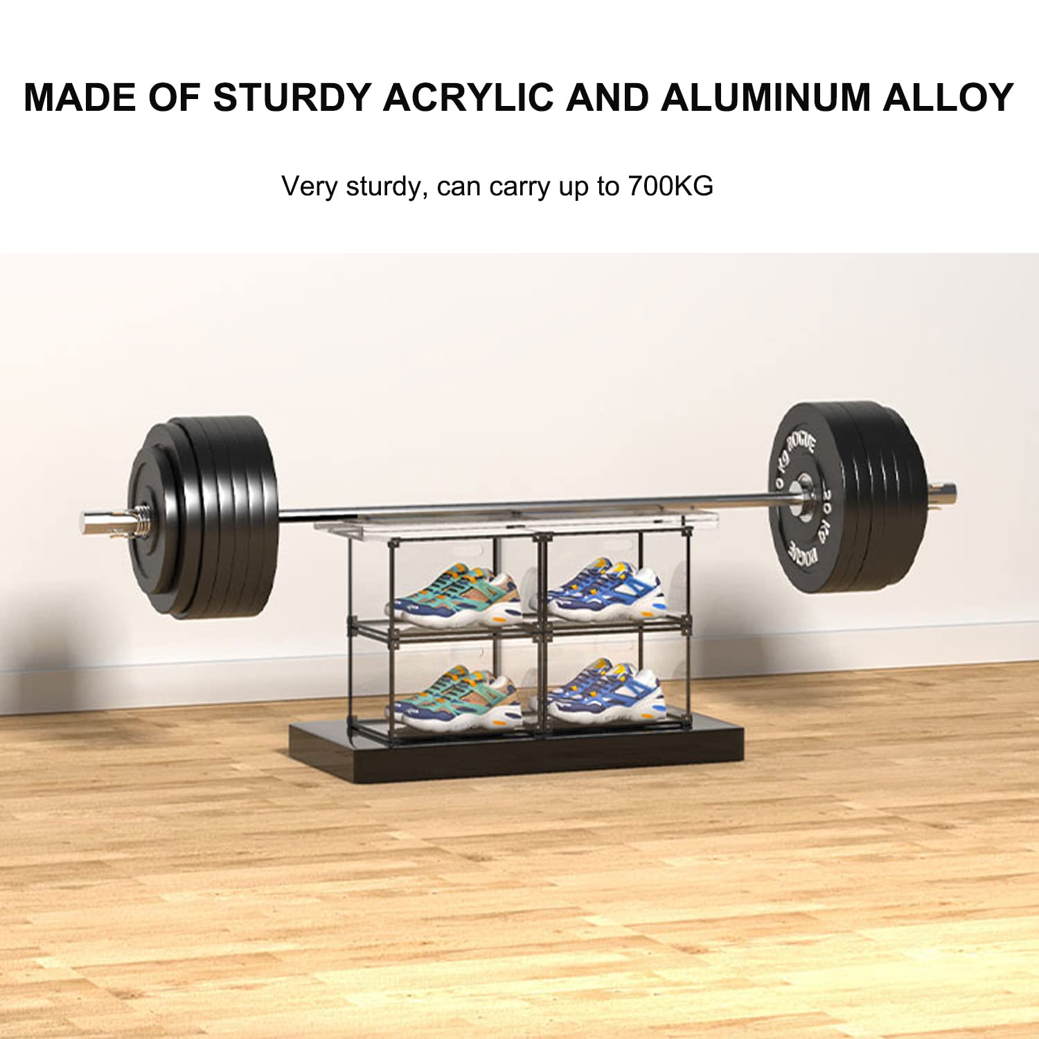 - Easy to Assemble and StackableAre you tired of a cluttered shoe collection Our clear storage shoe box is the solution you've been looking for! Made from sturdy acrylic and aluminum alloy, these boxes are a breeze to assemble with their simple interlocking design. Plus, they can be connected together, allowing you to easily stack them without worrying about them toppling over.
