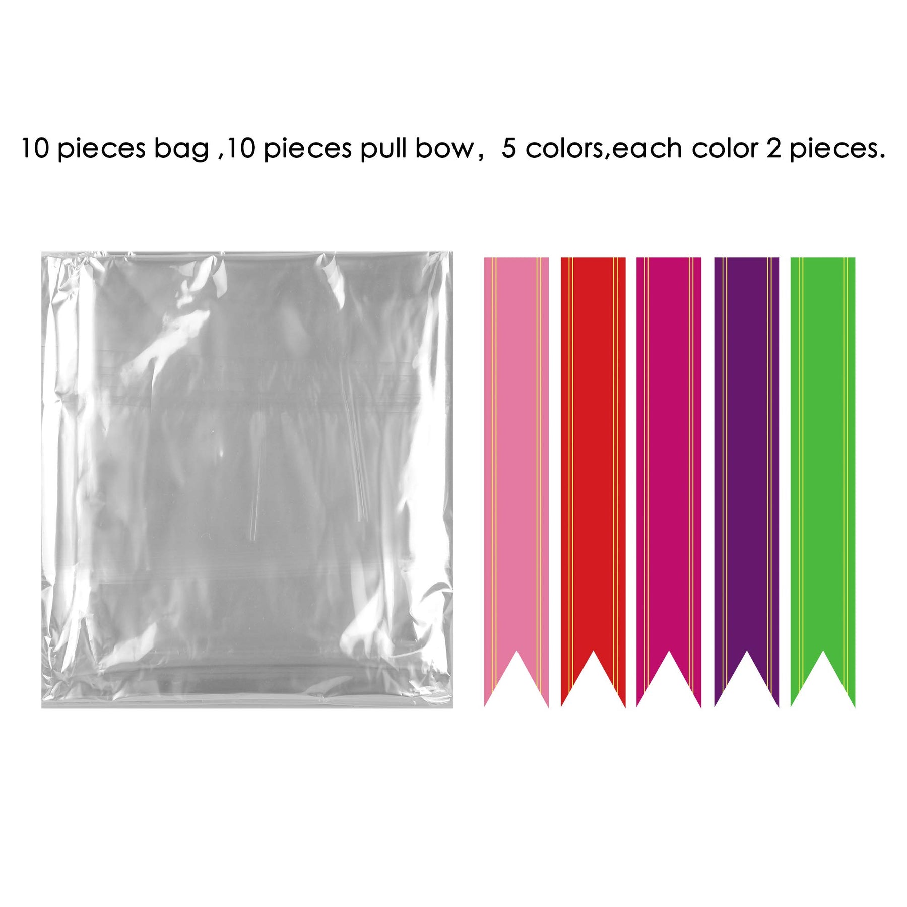 - What you get: you will receive 10 pieces clear basket bags and 10 pieces pull bows ,5colors,such as Red, Rose Red, Purple, Pink, Green,totally 20 pieces are enough for you to use